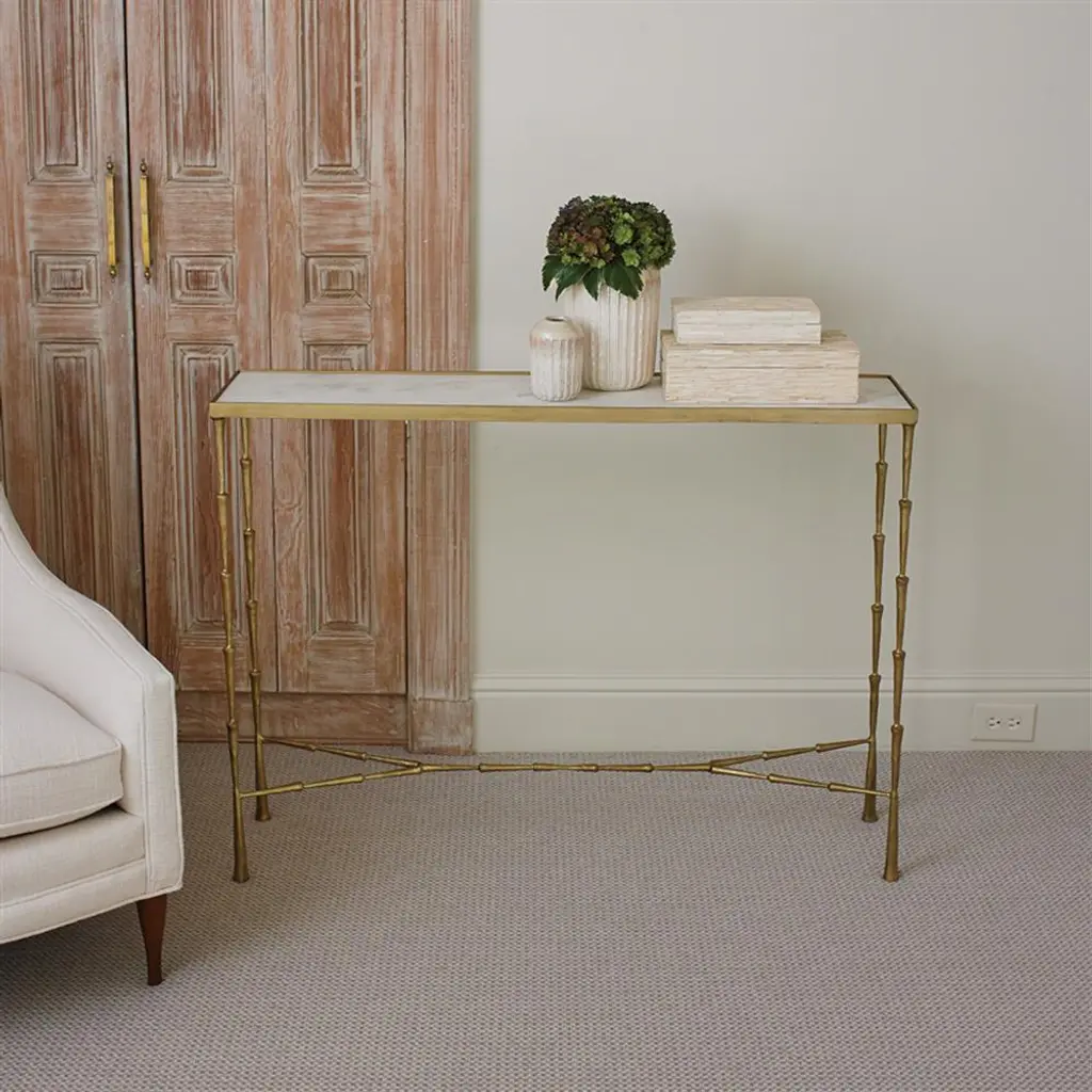 Malachi Hollywood Regency Brass Plated Iron Spike Marble Console