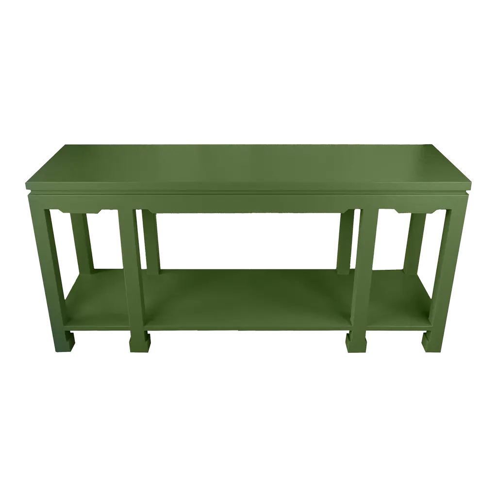 Dimensions: 48"W x 16"D x 34"H Elegantly wrapped in faux Raffia, finished to perfection, and available in 23 lacquer shades including "natural." This is a chic, durable, and organic option to make a subtle statement without sacrificing any aesthetic integrity. Made in America.