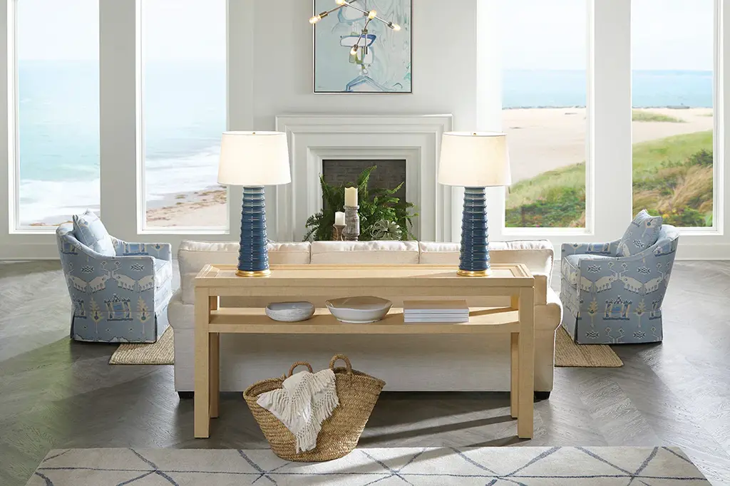 Dimensions: 72 x 18 x 34 Elegantly wrapped in faux Raffia, finished to perfection, and available in 23 lacquer shades including "natural." This is a chic, durable, and organic option to make a subtle statement without sacrificing any aesthetic integrity. Made in America