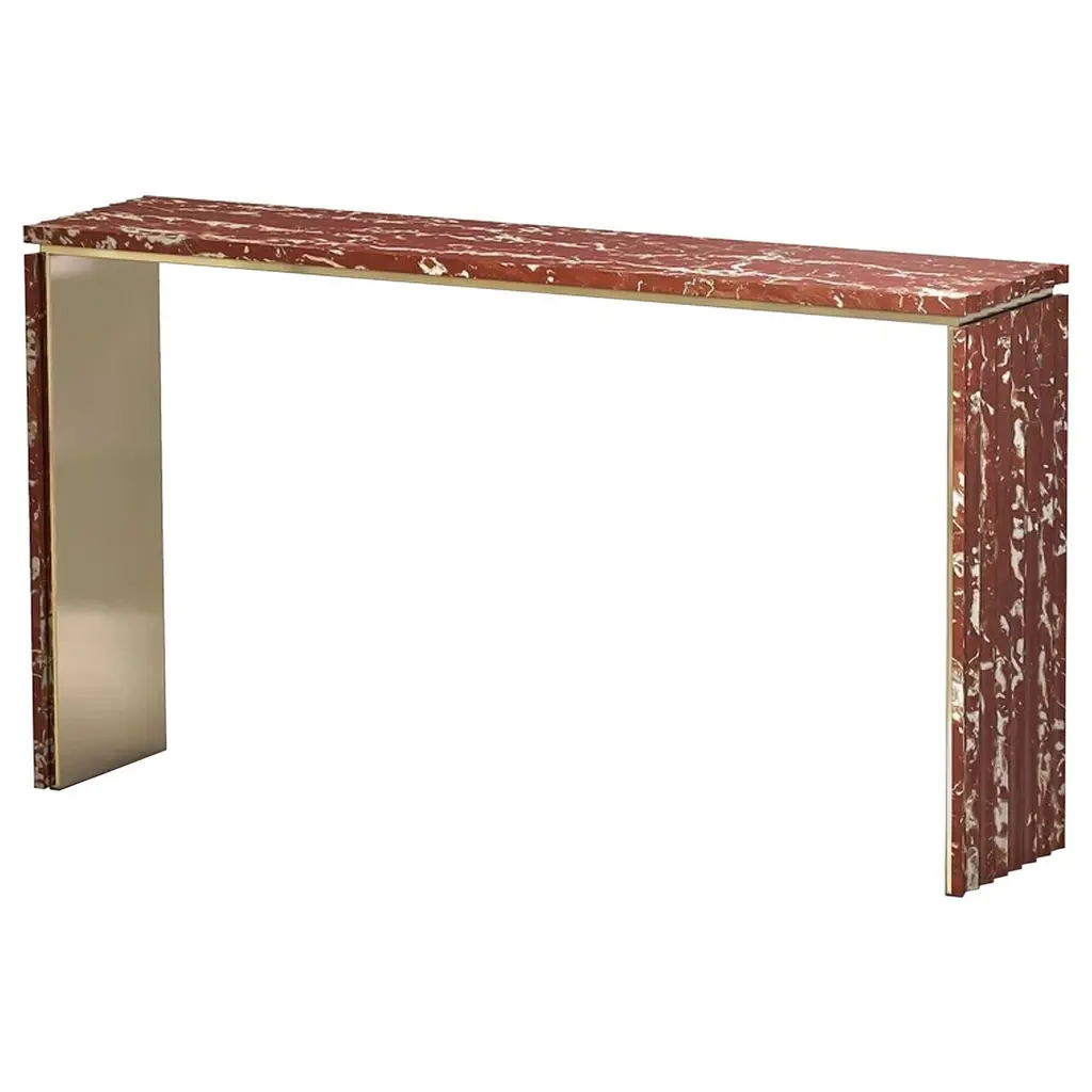 Make an unforgettable entrance with this striking console table, finished in exotic mappa burl veneers that have been intricately pieced to showcase the interplay of light and dark tones. A Rouge-painted interior adds a playful pop of color. Pair with our Burlesque mirror to create an eye-catching entry that exudes warmth and natural elegance.Download Assembly Sheet