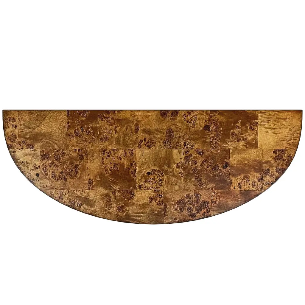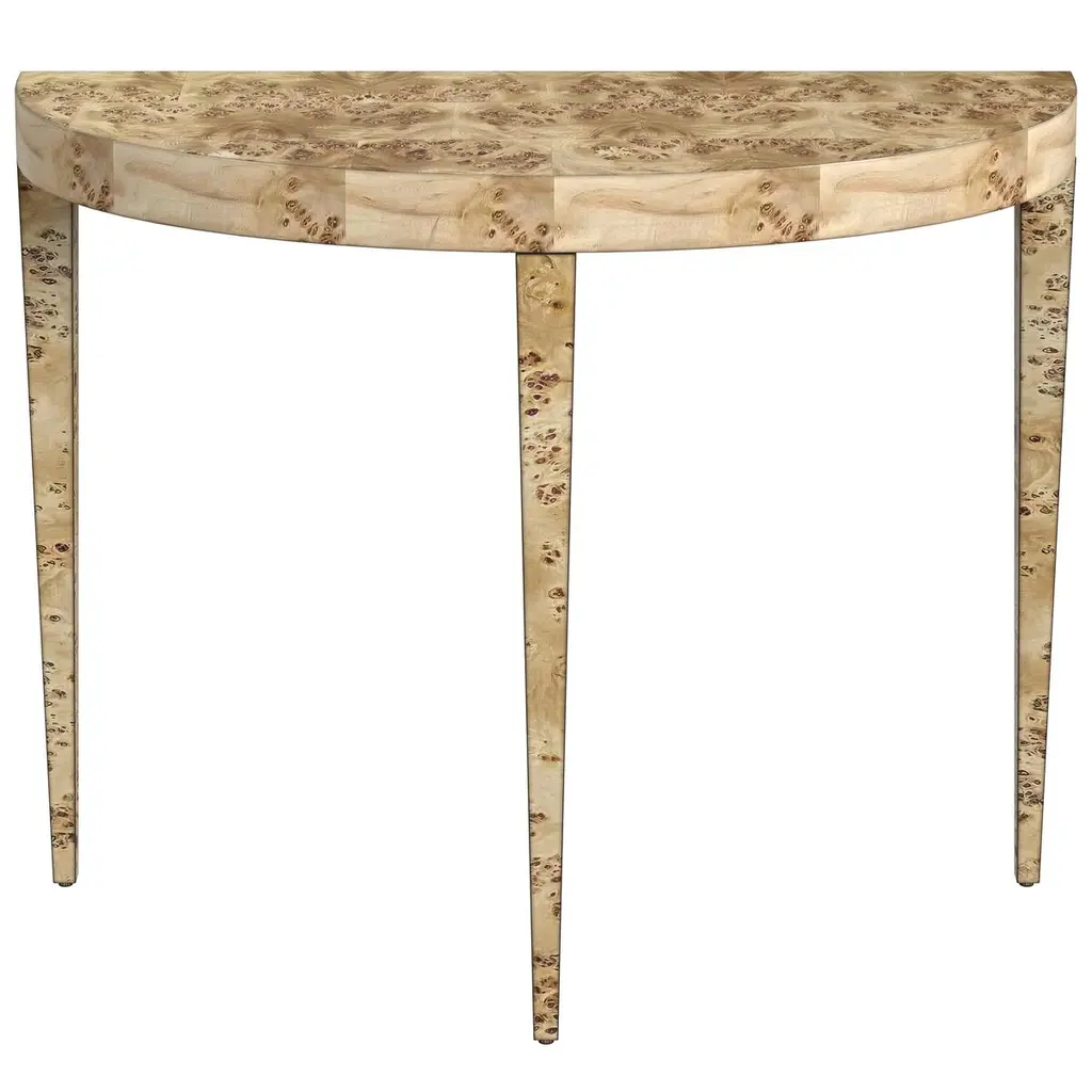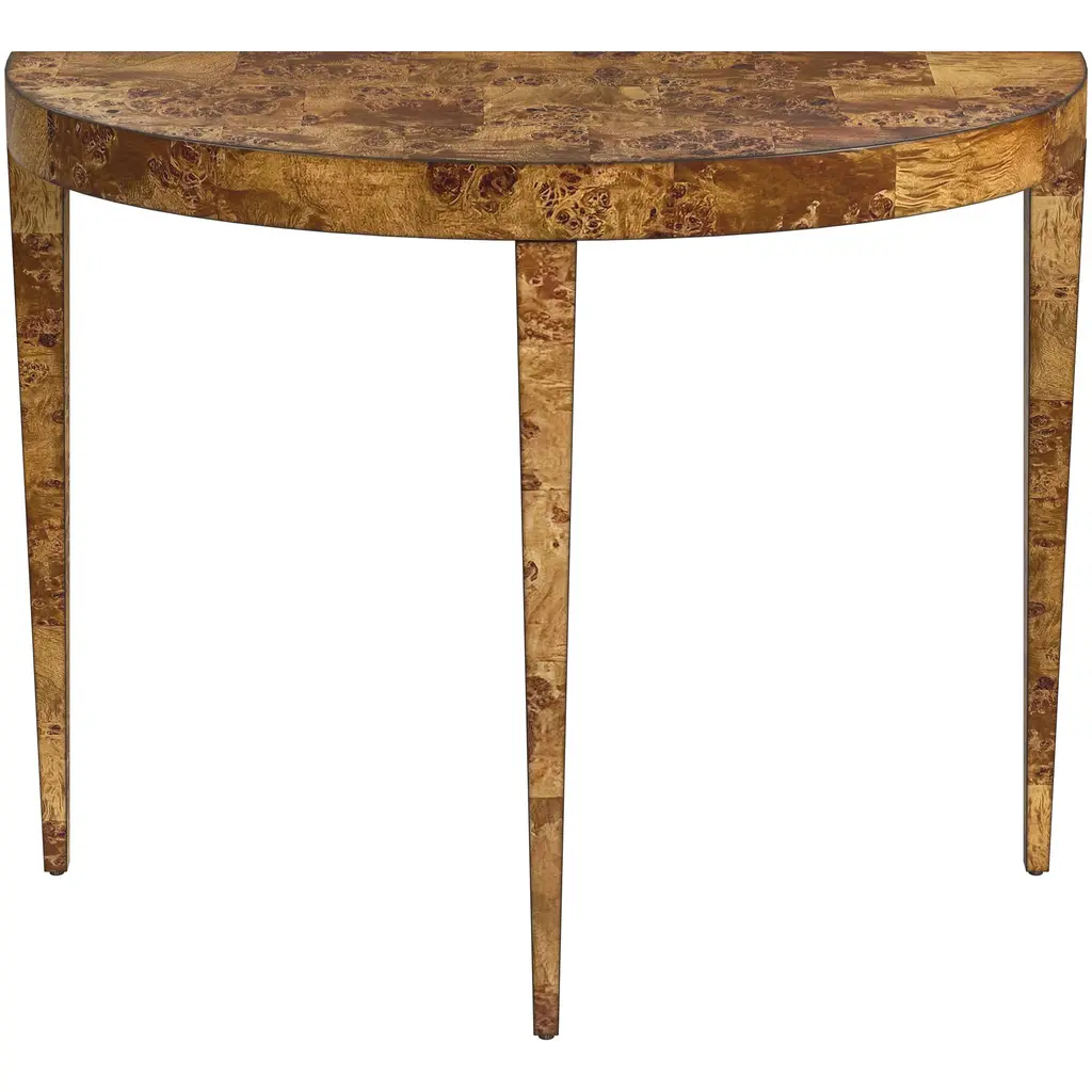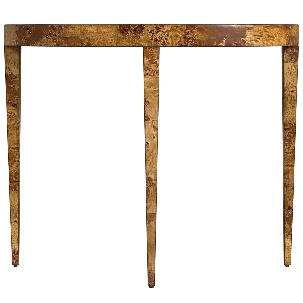 Covered in a gorgeous patchwork burl veneer, this 3-leg console adds a signature look to your space with its stunning finish. Known for its unique characteristics, burl wood showcases the rare swirling grain found at the root of a tree, making every piece unique and guaranteed to make a statement.