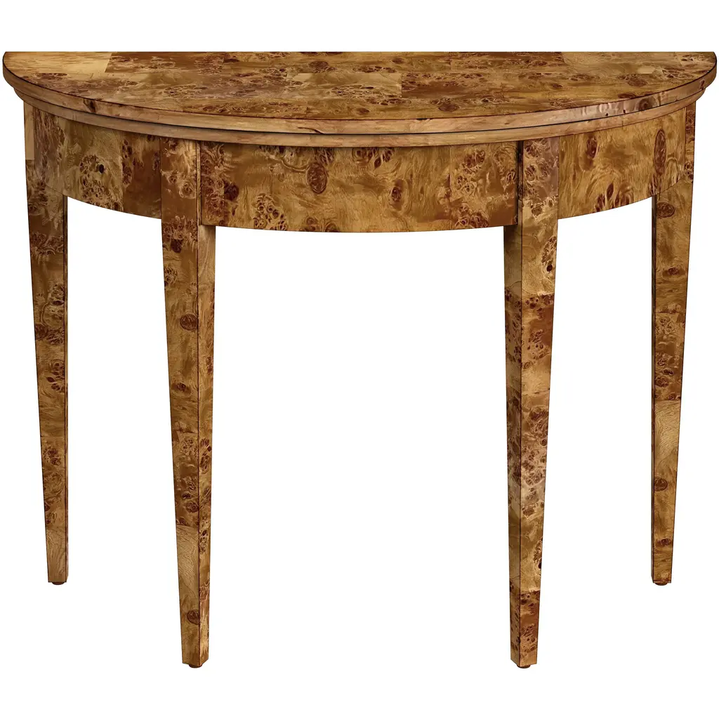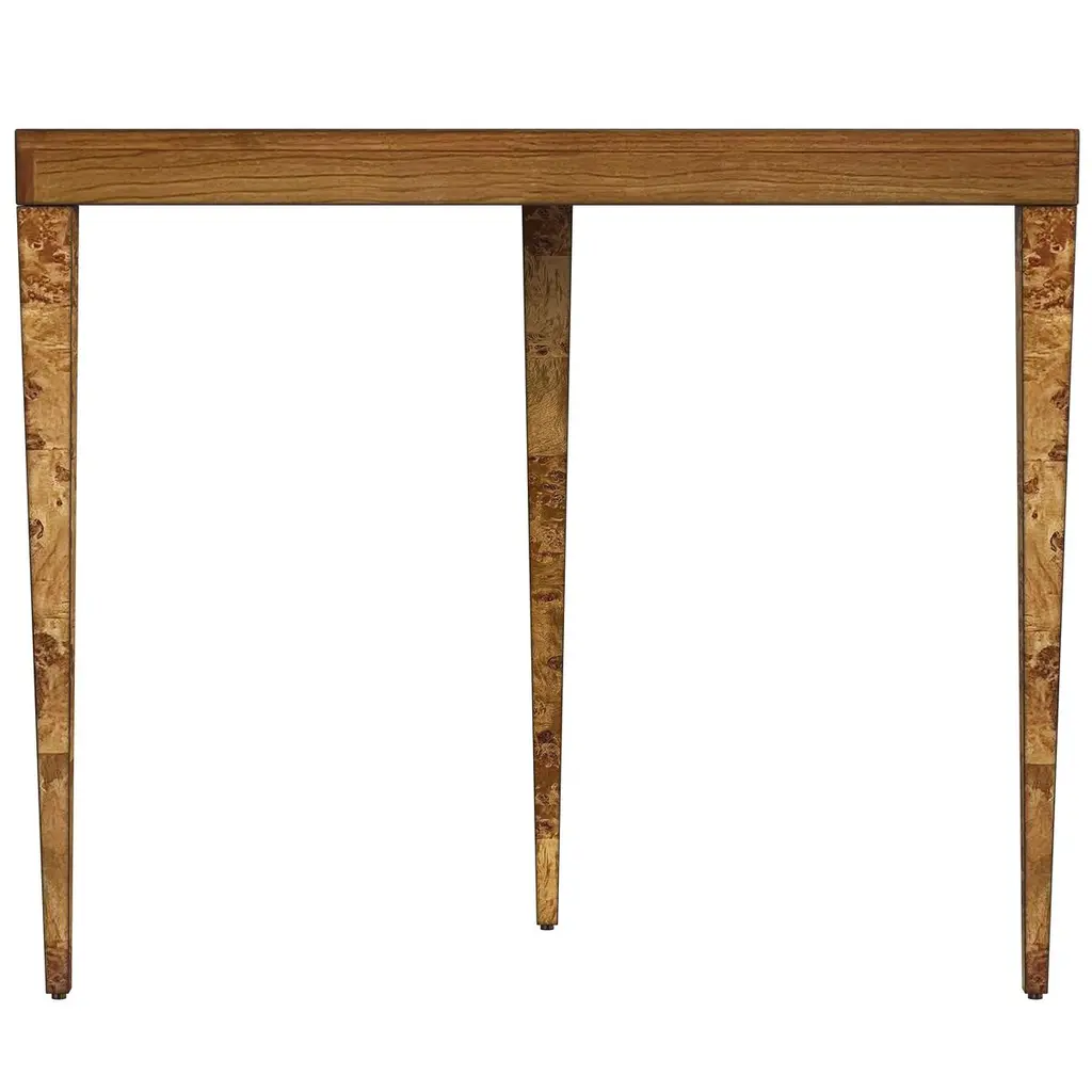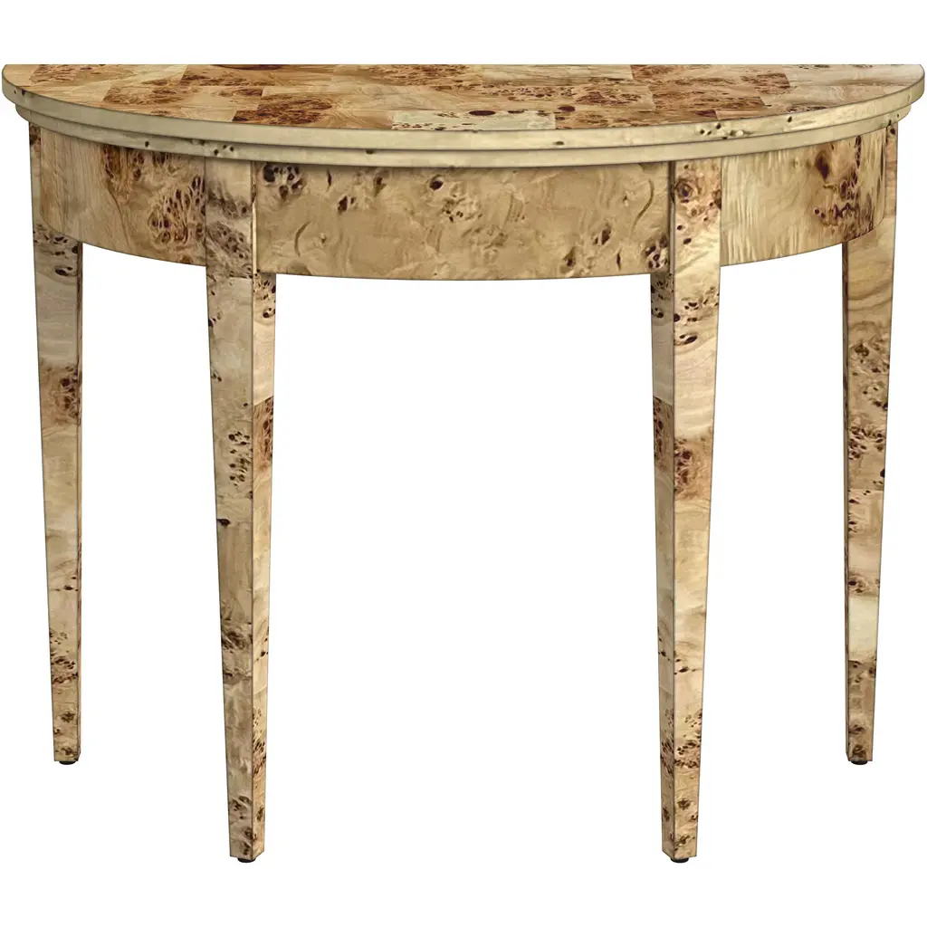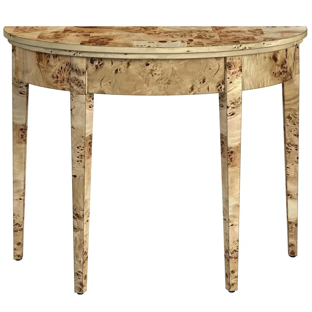 Covered in a gorgeous patchwork burl veneer, this 3-leg console adds a signature look to your space with its stunning finish. Known for its unique characteristics, burl wood showcases the rare swirling grain found at the root of a tree, making every piece unique and guaranteed to make a statement.