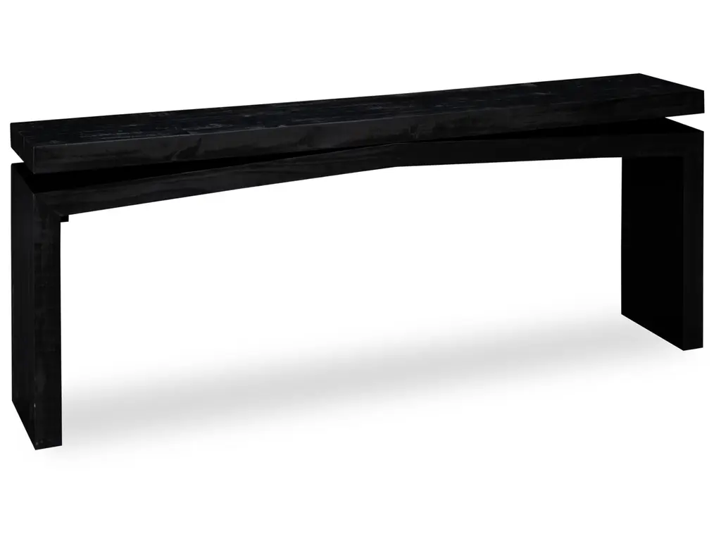Add the finishing touch to your living space with the Matthes Console Table from Four Hands Furniture. This versatile console table features a rectangular top supported by a thick arched base in a matching aged black finish. Perfect for an entryway, hallway or living room, this table offers plenty of display options.