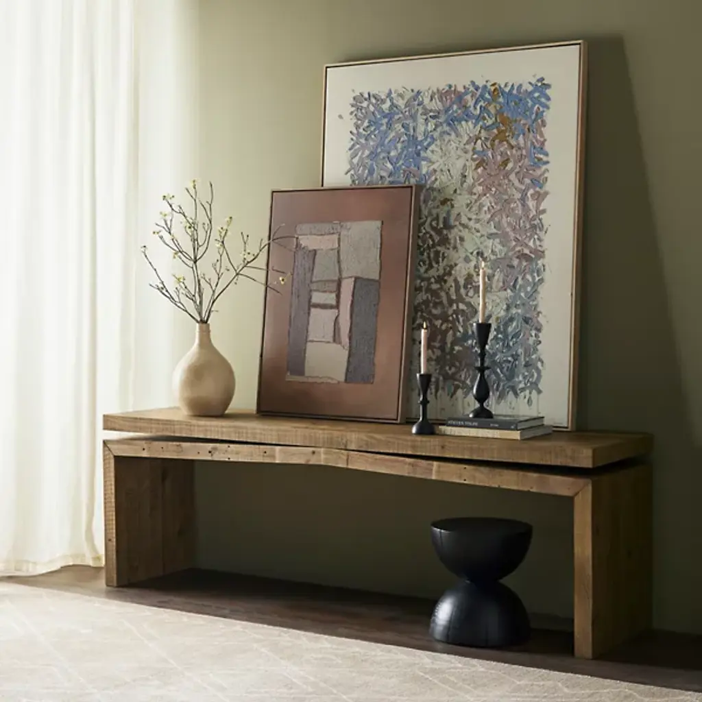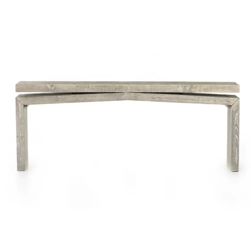 Four Hands presents the Matthes Wood Console Table. It features a simple and streamlined look which highlights the natural beauty of its wooden composition. Finished beautifully, it is made from solid reclaimed pine to give a rustic feel and eco-friendly components. The composition of its silhouette gives the top portion a weightless look, elevating the Matthes even further from the everyday iteration. Add your entertainment media solutions of choice to this piece for an optimal experience.
