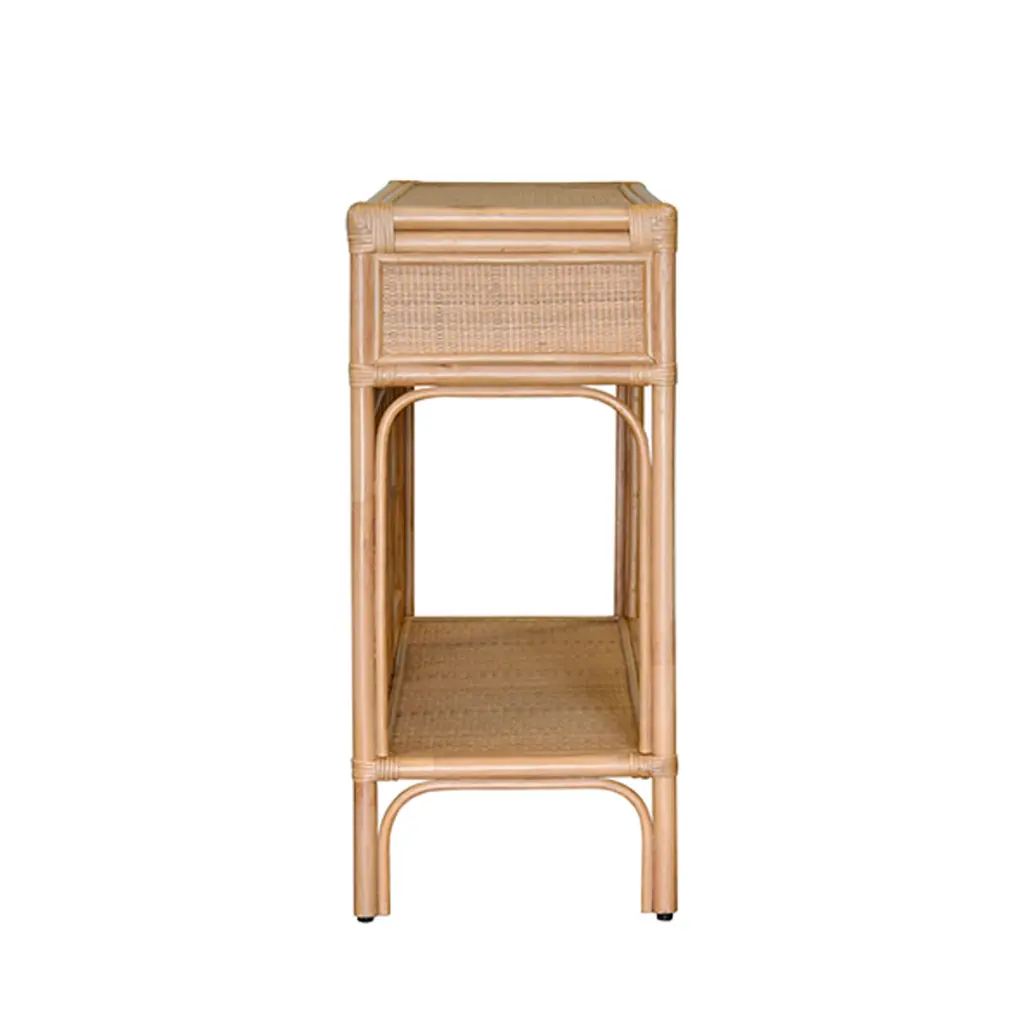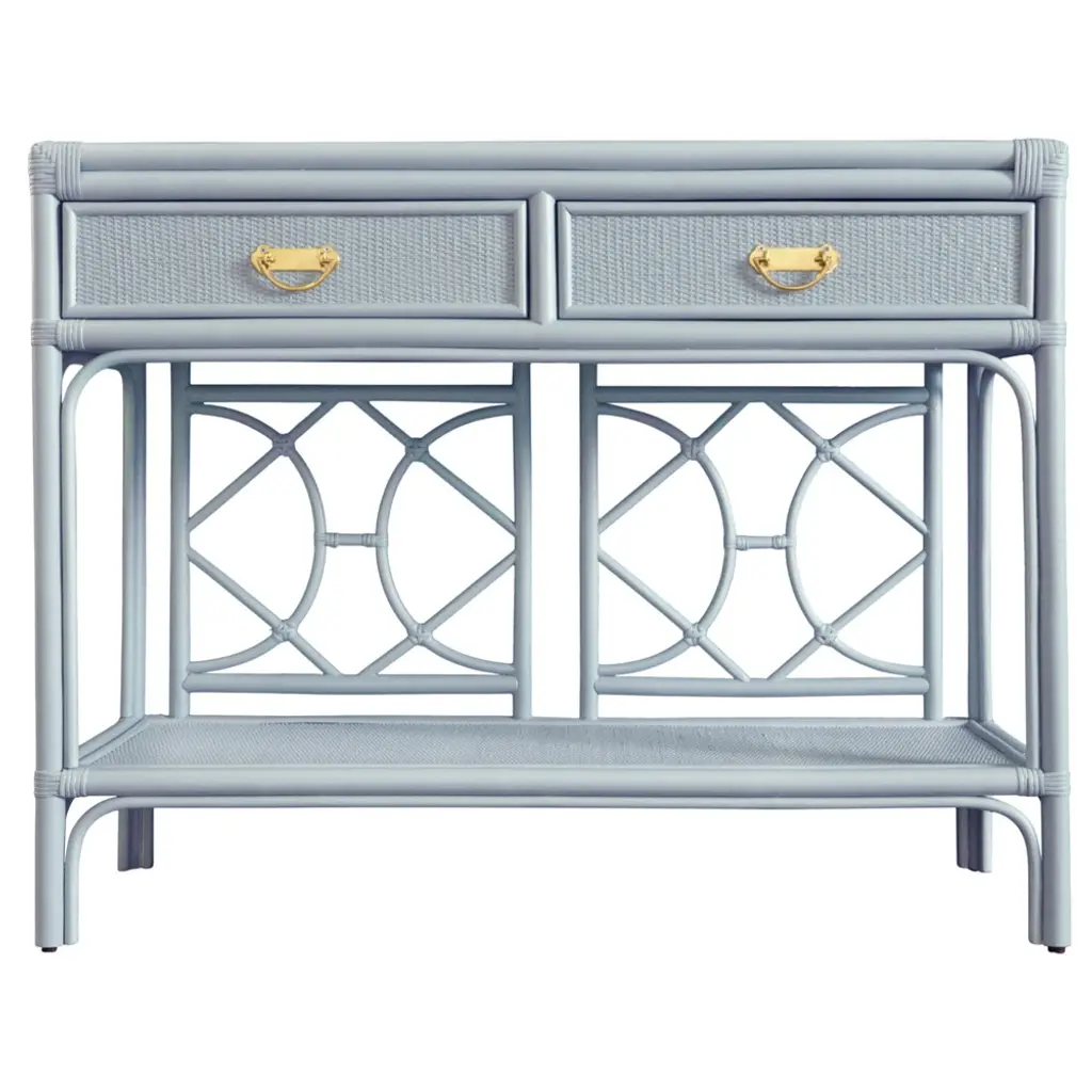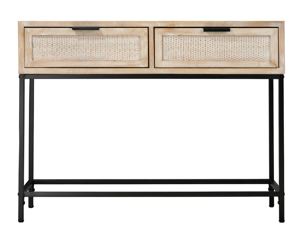 Matthew Izzo Home - Gideon Natural Rattan Tow Drawer Console Table With Decorative Back