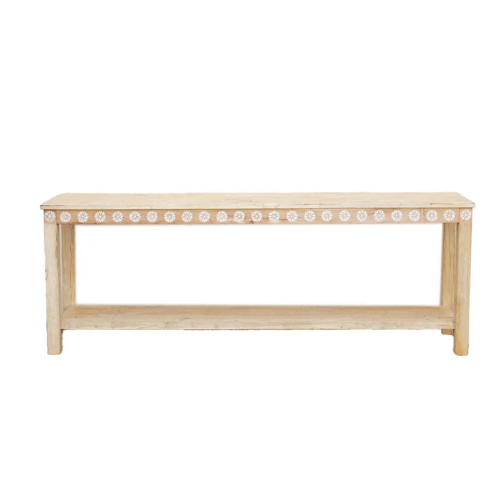 Matthew Izzo Home Marshall Light Burl Wood Waterfall Edge Two Tier Console Table