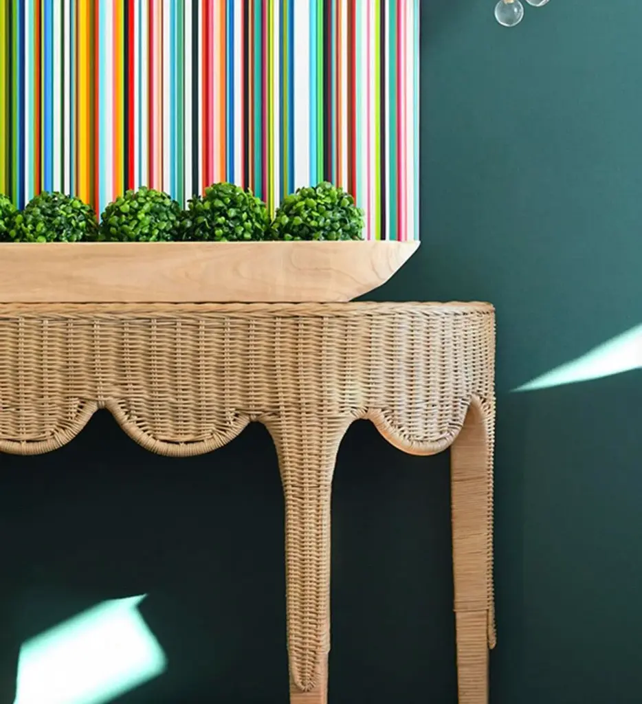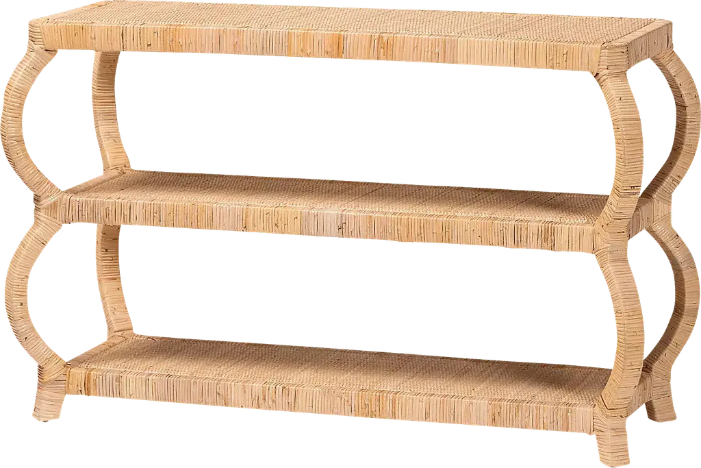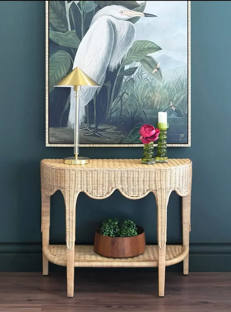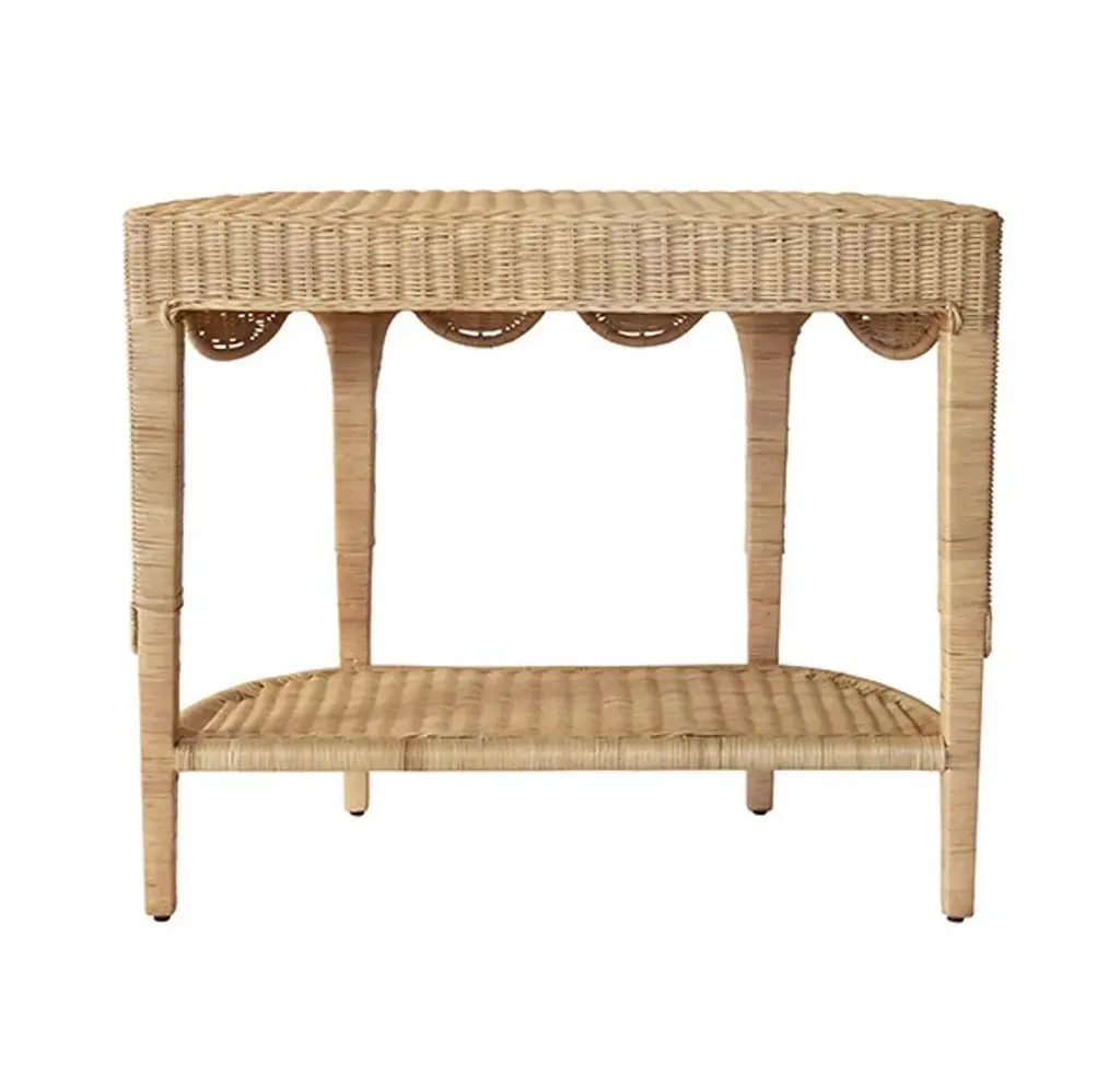 Matthew Izzo Home - Paloma Scalloped Rattan Demi Lune Console Table