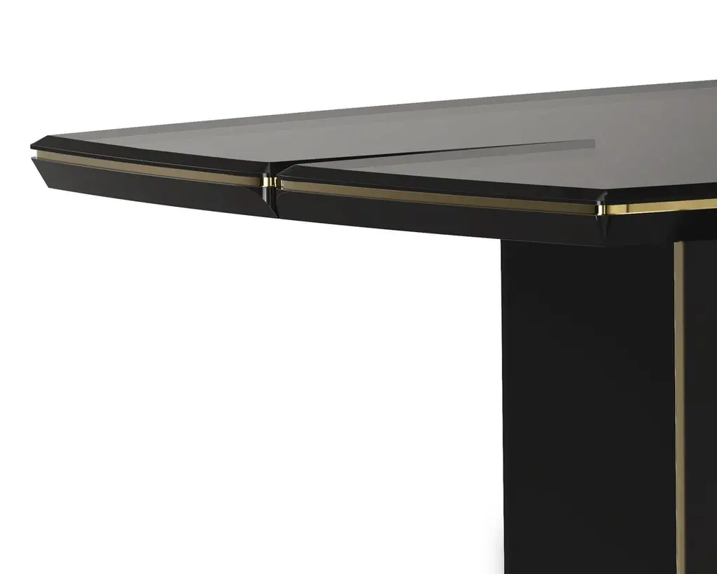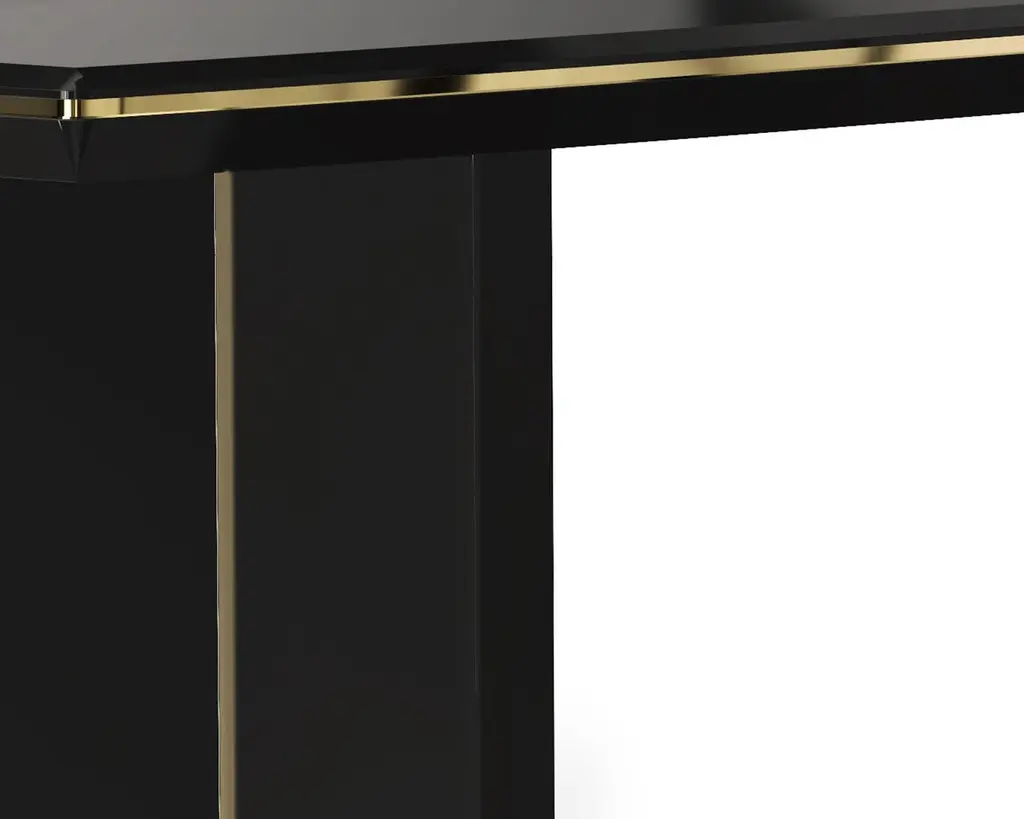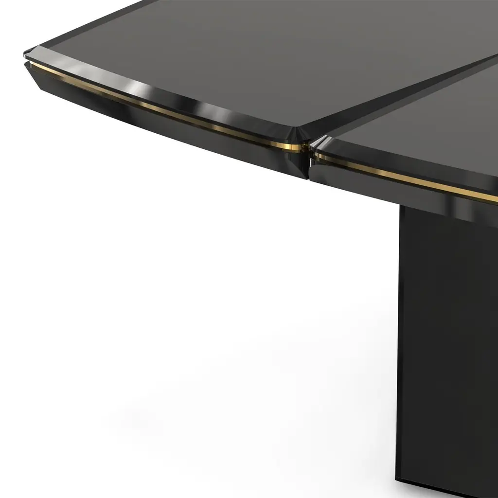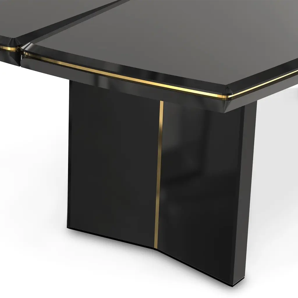 Dining table maxima with wooden black lacqueredtop and structure and with gold plated solid polished brasstrim. With gold plated solid polished brass on base.Also available in maxima console table.