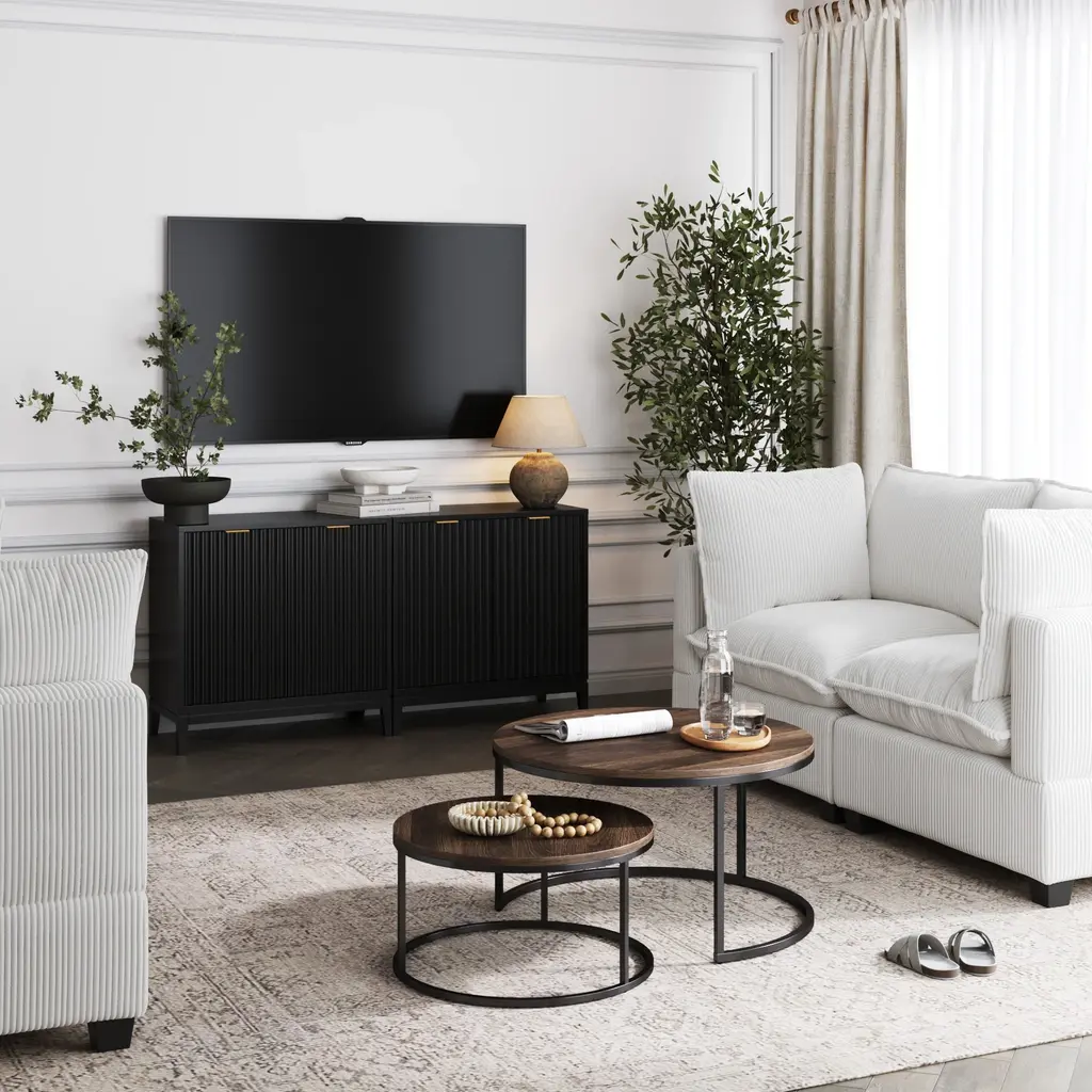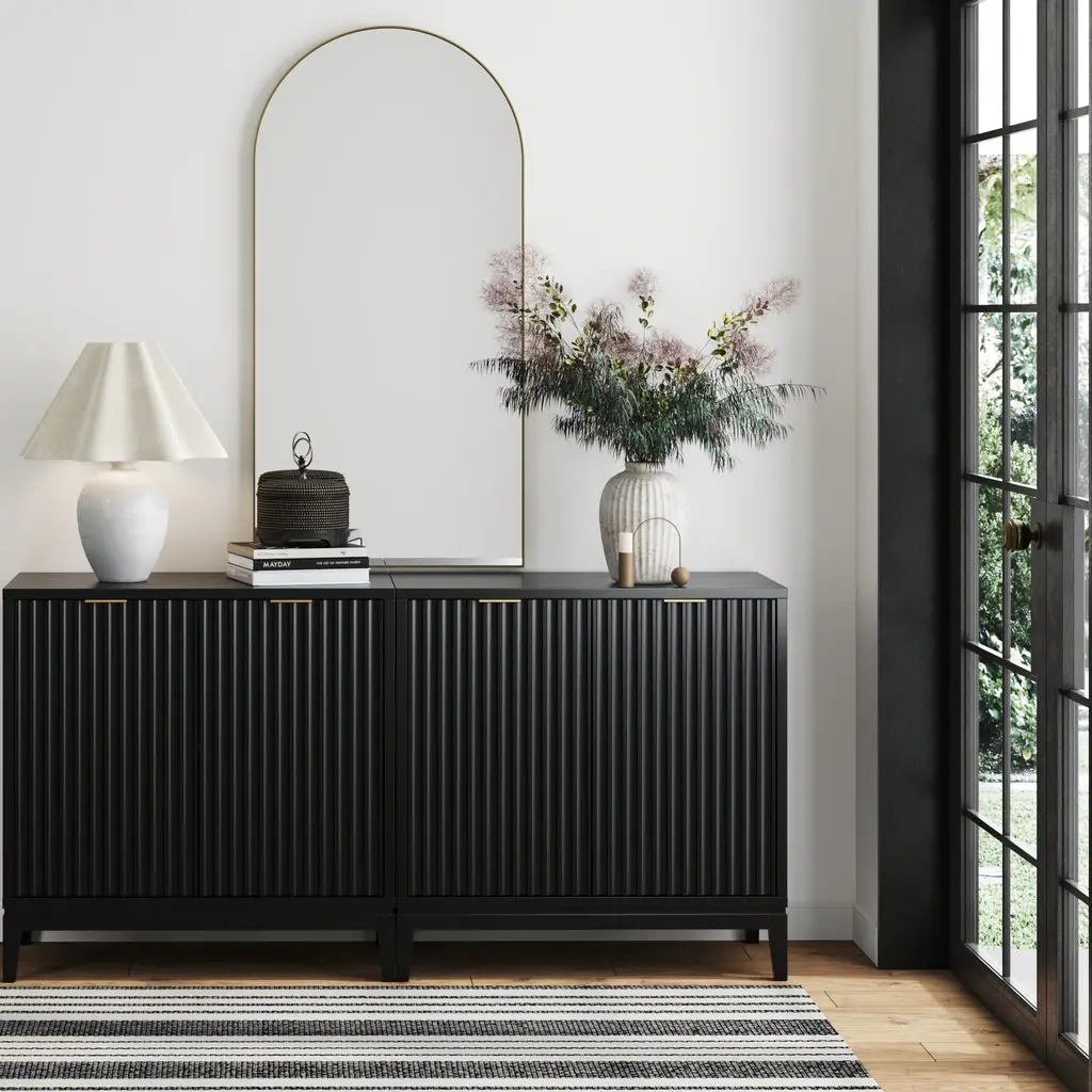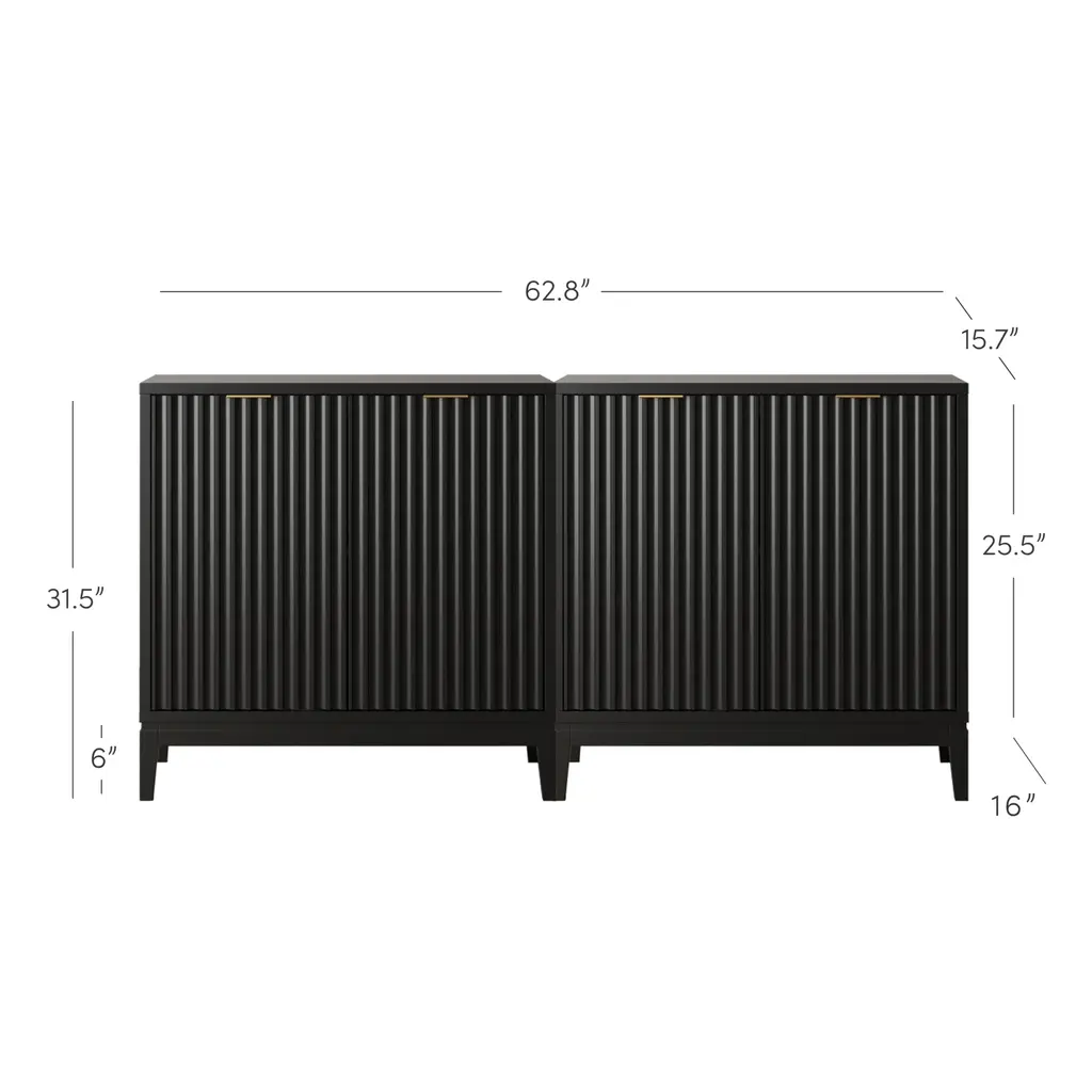Mid-Century Fluted Tv Console Credenza Black (Set Of 2)