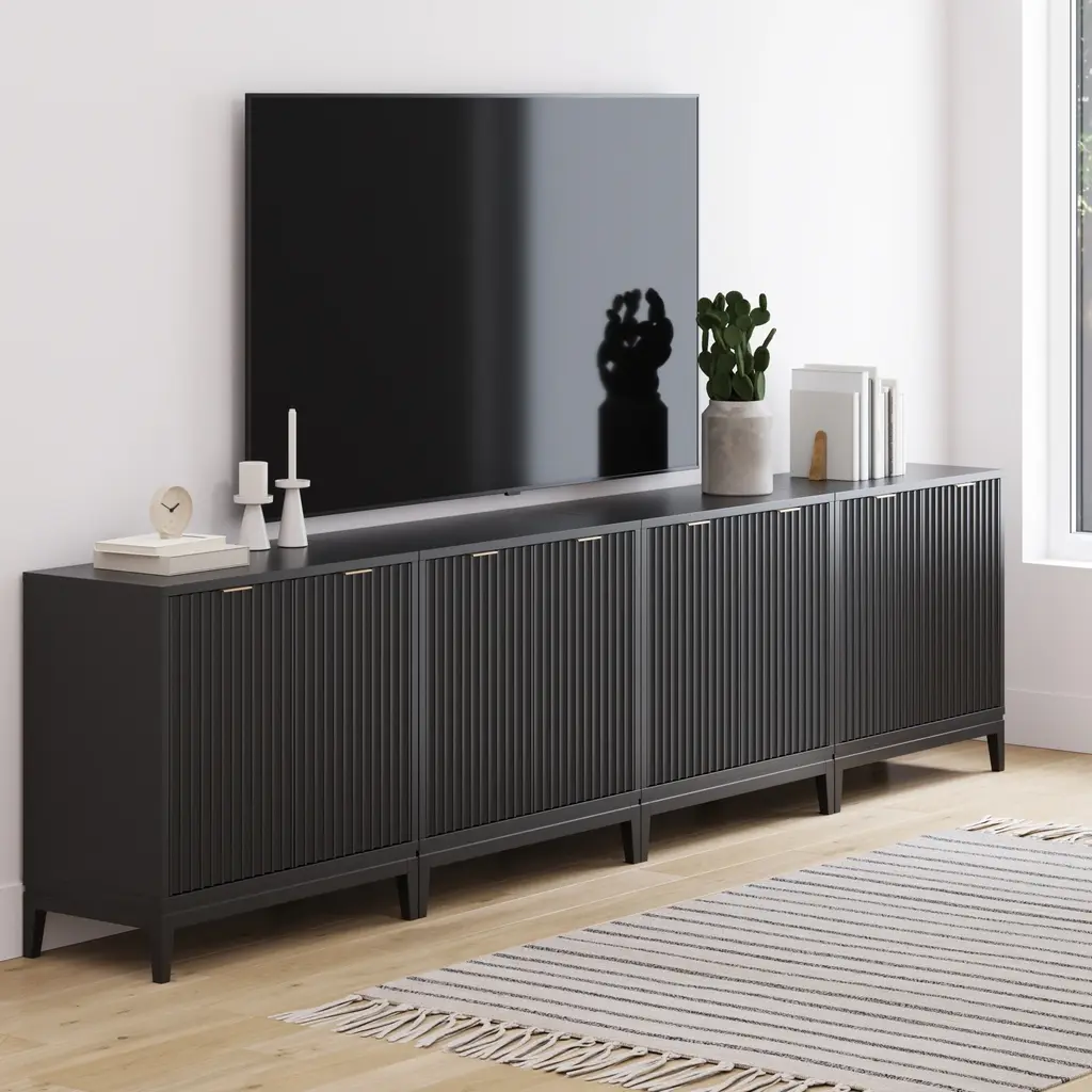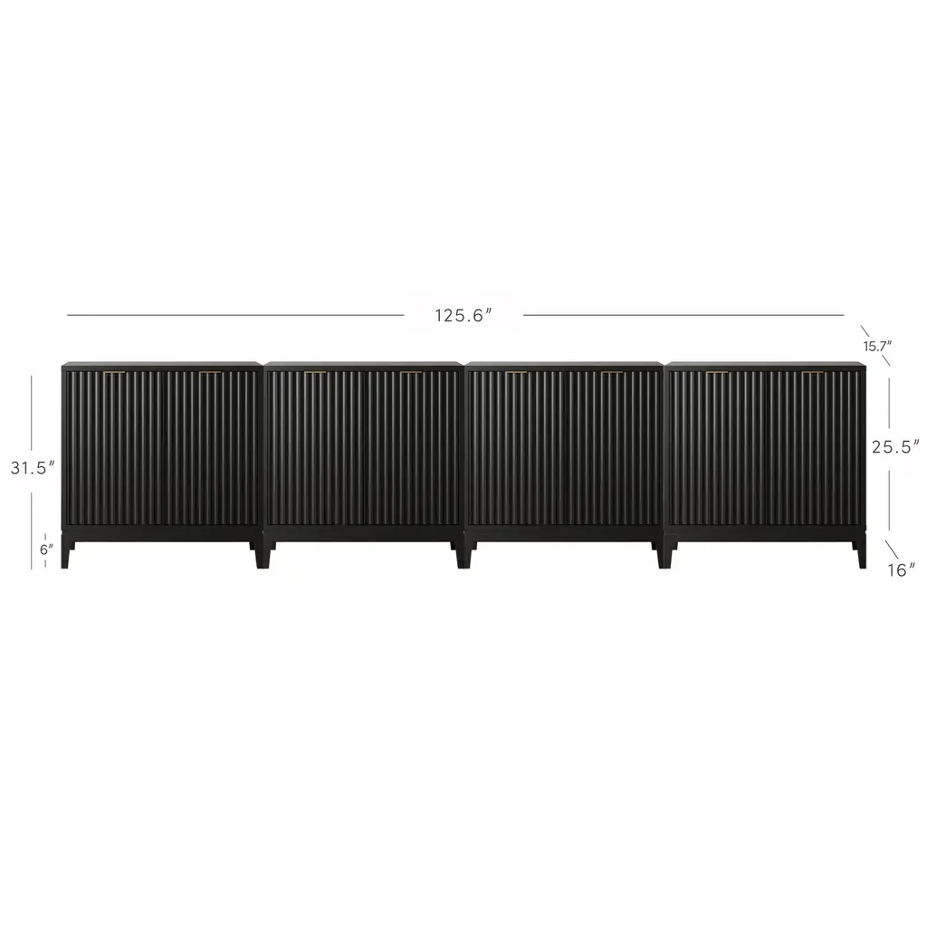 Mid-Century Large Fluted Credenza Console Table Black (Set Of 4)