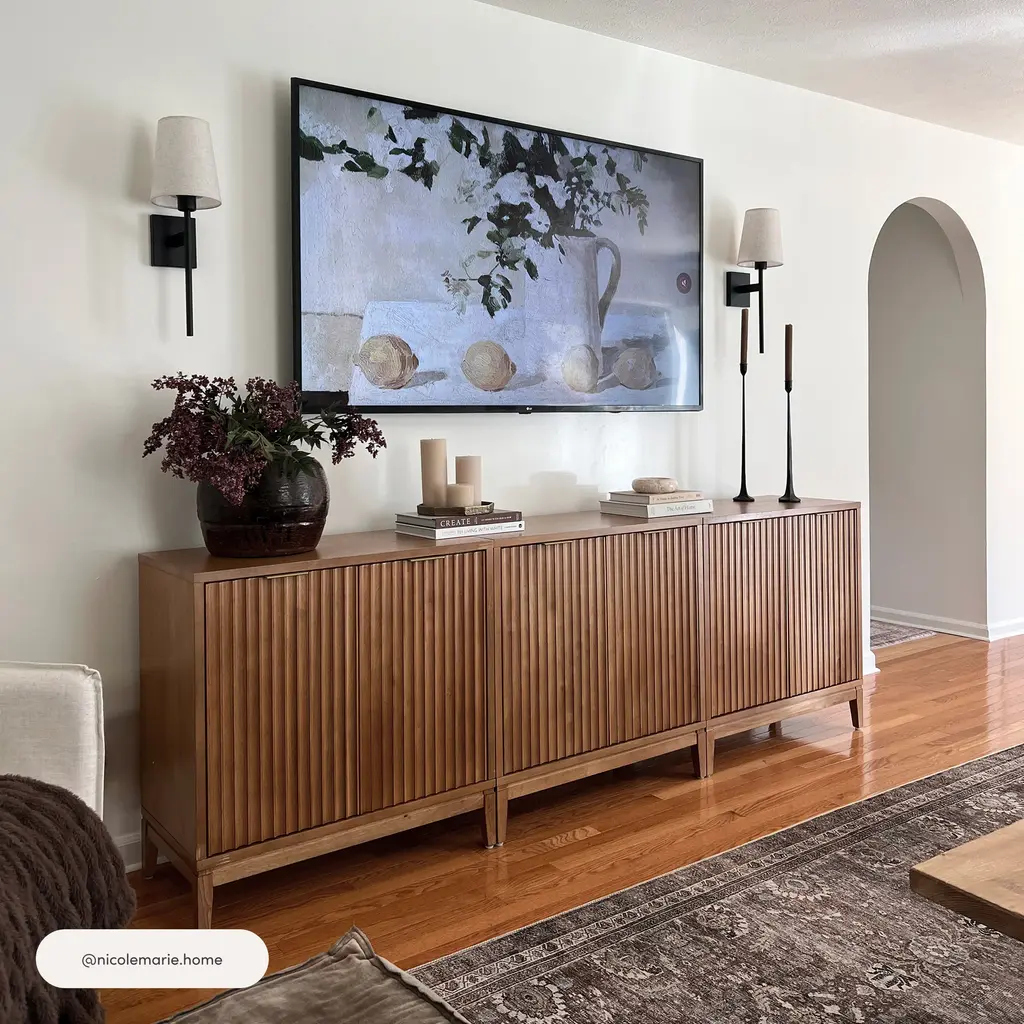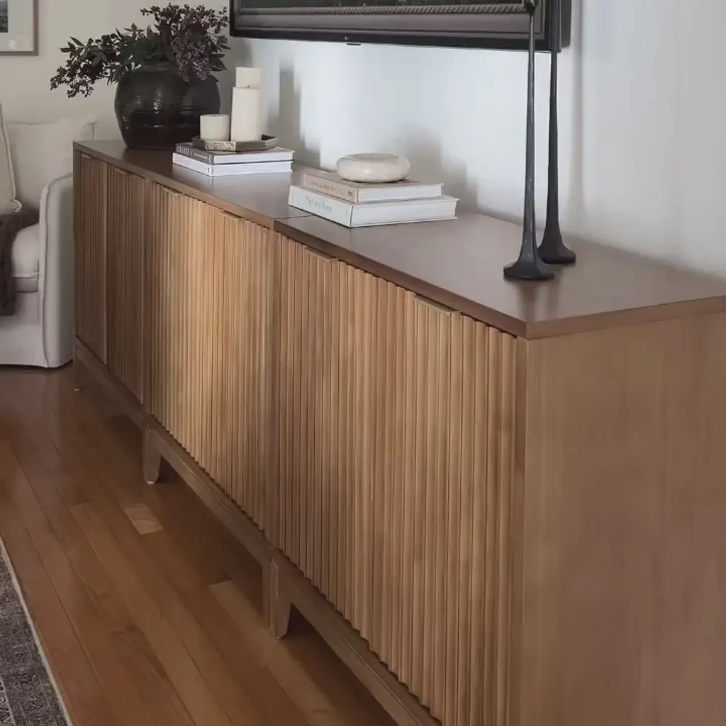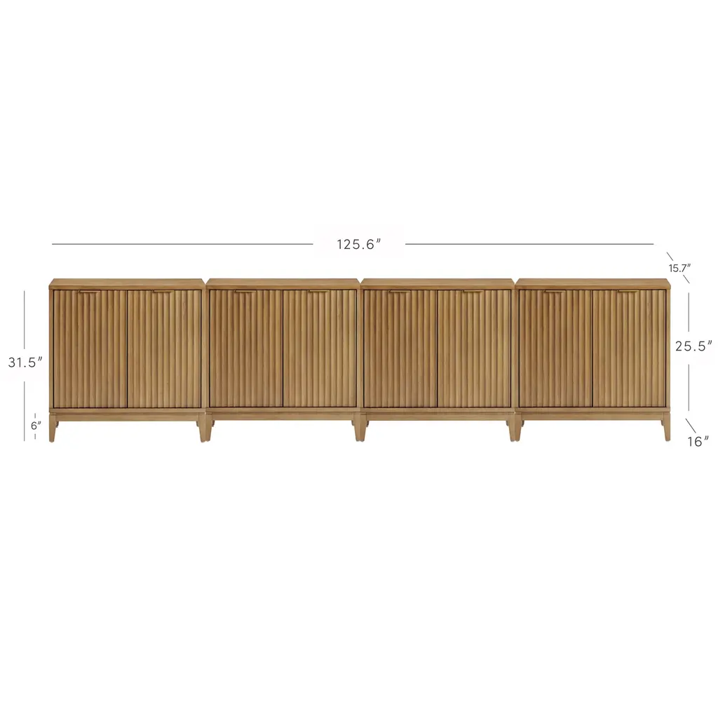 Mid-Century Large Fluted Credenza Console Table Light Brown (Set Of 4)