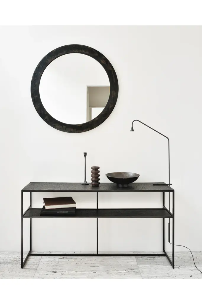 Elevate your interior design with the captivating Mineral Console Table by Ethnicraft. In a minimalist or industrial-themed interior, this Pentagon table adds a touch of organic beauty. Place it in any entryway to welcome guests with its unique surface, shaped by ancient techniques and adorned with natural mineral powders and rich color pigments. You may also position it against a bare wall or display your cherished decor pieces, allowing the design to frame your treasures.