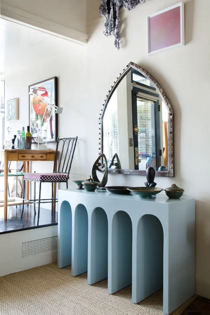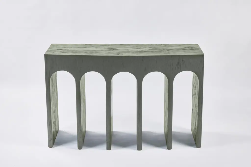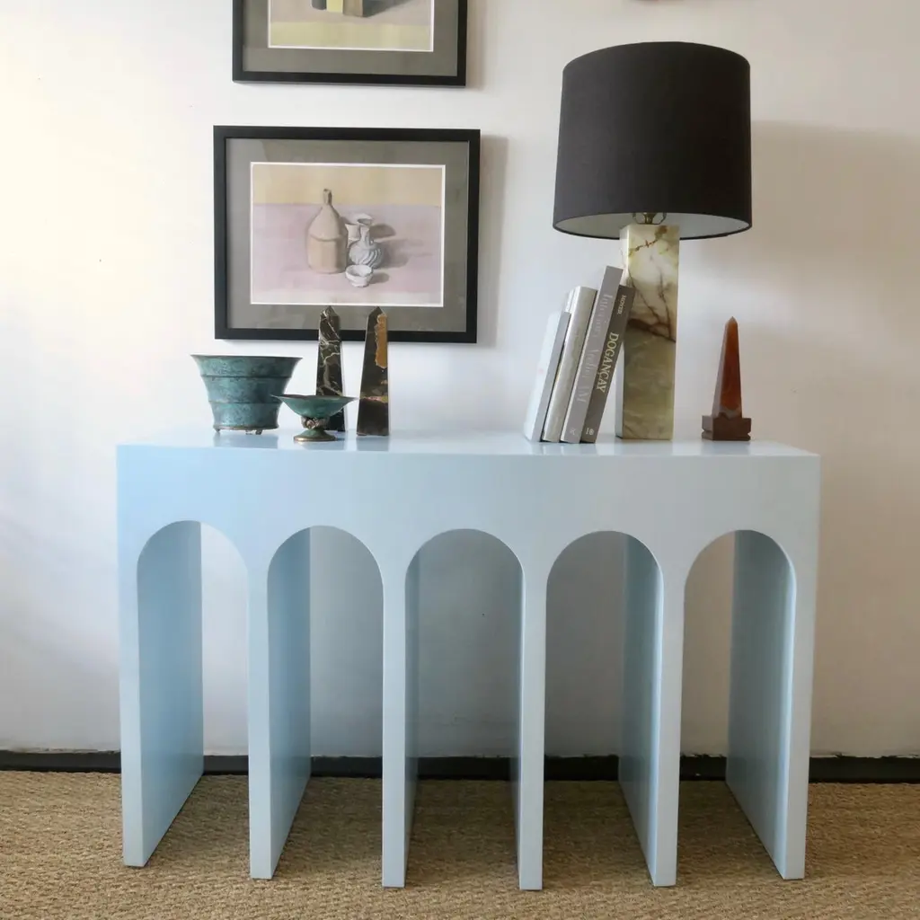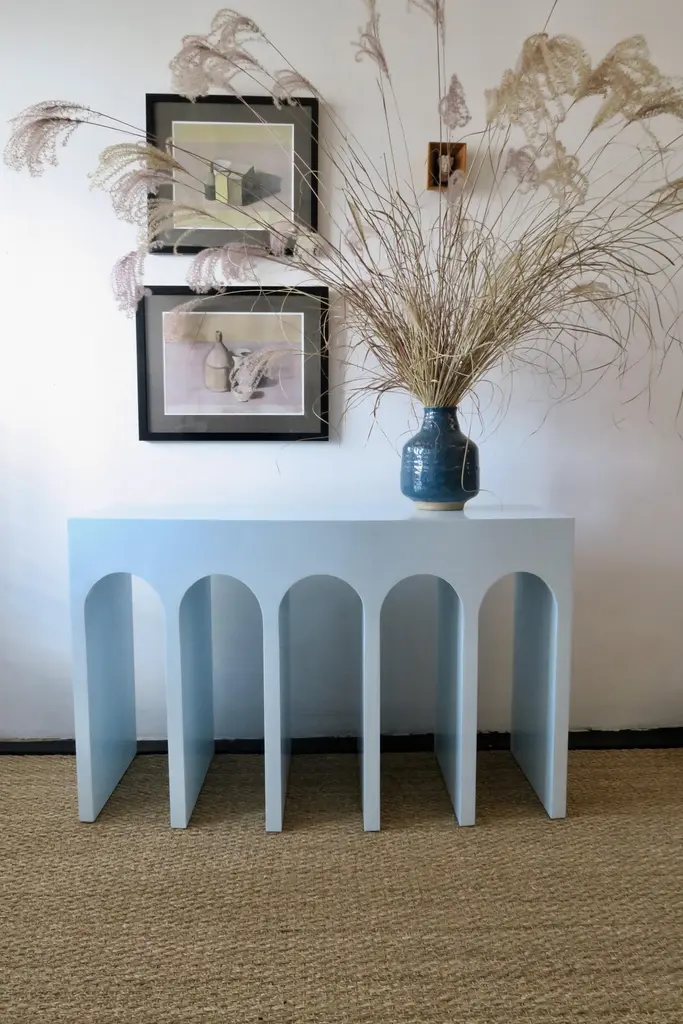 Martin & Brockett's Arcade Console 48” is a nod to the ancient Roman architectural form- a succession of contiguous arches supported by columns. It features a slight convex curvature at the face and a textured surface.Standard: H 30 in. x W 48 in. x D 18 in.Part of our Arcade Collection.Available for order in additional finishes and custom sizing.Lead time: 15-16 weeks.