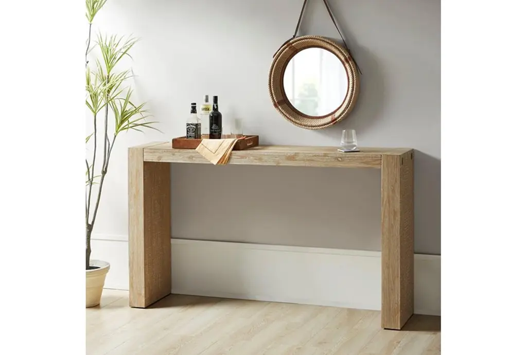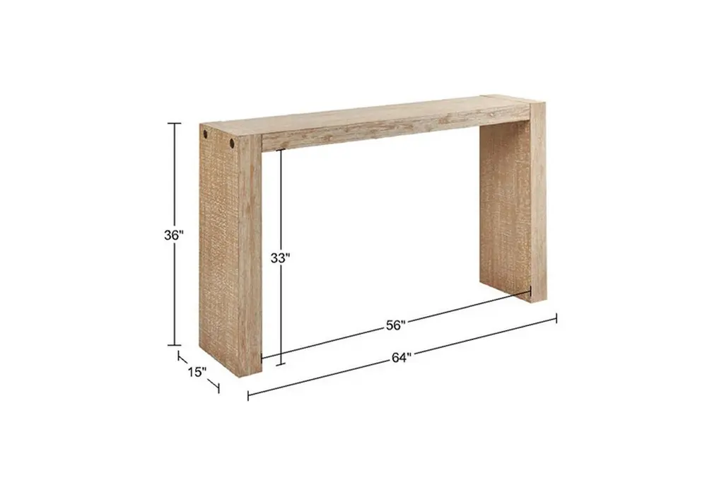 Enhance your entryway with the Modern 64" Light Natural Wood Narrow Console Table. This beautifully designed rectangle table offers a blend of modern style and natural warmth, perfect for any foyer or hallway. Its solid hardwood construction and reclaimed wheat finish add a touch of rustic charm to your home.