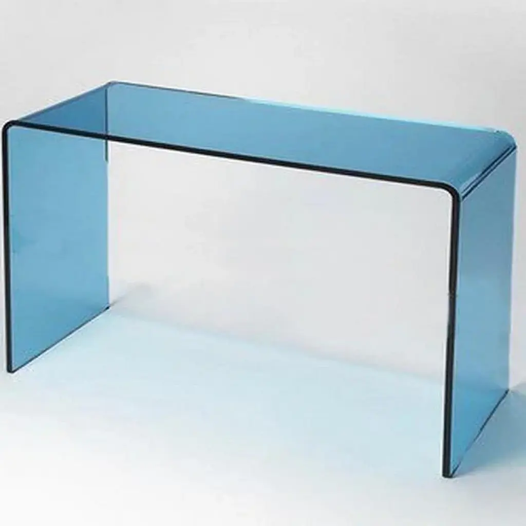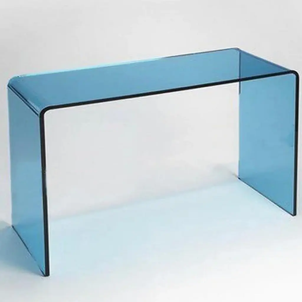 Our Transparent Blue console table floats in a room without permanent visual seating. In a single continuous turn, thick-cut acrylic plexi will look very stylish in entrances, corridors and behind the sofa. It is made of 20 mm transparent blue acrylic material. The product is completely shaped by hand bending. Special dimensions can be made on request. Delivery within 5 days from the production date by express shipping. Special packaging is made in the case to prevent breakage and damage. Clean with mild soap and water; dry with a soft cloth Overall dimensions Width: 46 " Depth: 15" Height: 26 "