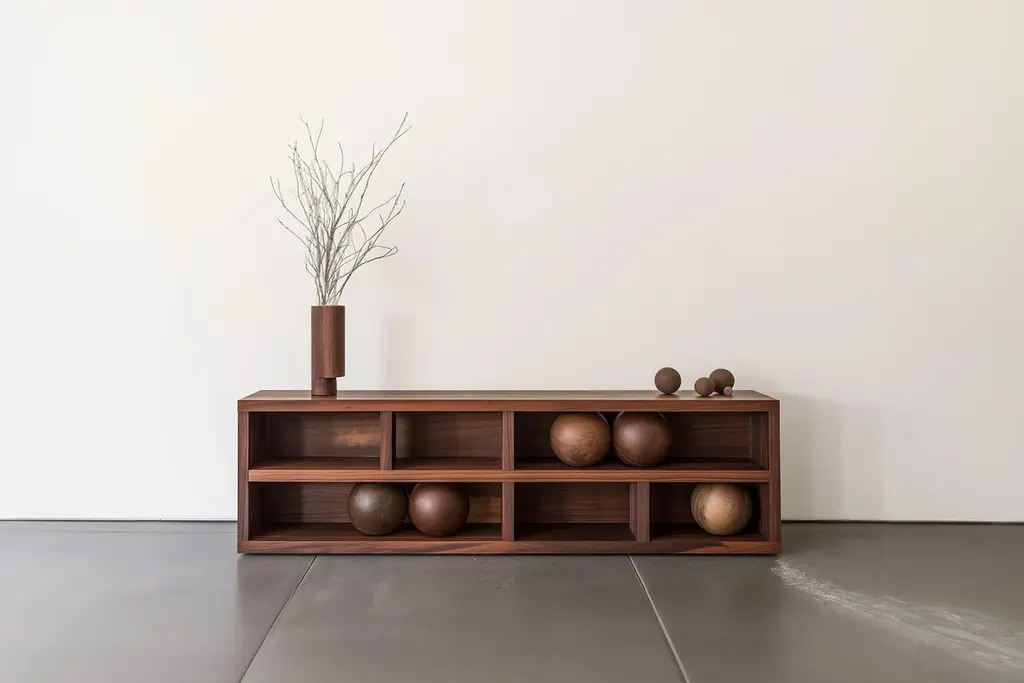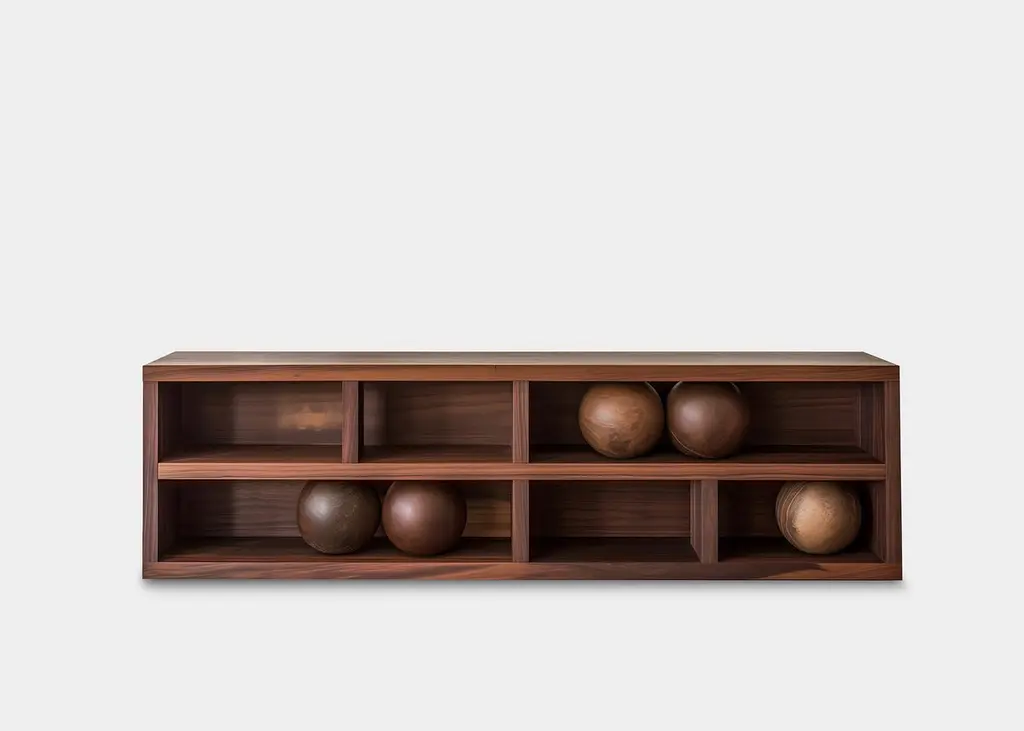 Modern Design Console 20, Joel Escalona's Sereno, Decorative Details—Sereno CollectionDesign by Joel Escalona for NONOWhen practicality becomes art, the result is the Sereno Collection by Joel Escalona for NONO. This collection redefines tranquility through exquisite credenzas and sideboards that stand alone in their beauty, embodying a serene simplicity that everyone can feel.The Sereno Collection celebrates minimalism with pieces that don’t need additional decoration to make a statement. Each credenza and sideboard is adorned with unique wooden sculptures, reminiscent of a tranquil pebble, thoughtfully placed to enhance its elegance. These pieces are crafted from solid wood, adding character to each design. Standard models use red oak, but customization with various woods and finishes like walnut, teak, and burnt oak is available to perfectly suit your style and space.Founded in 2011 by Joel Escalona, NONO has over a decade of experience producing high-quality interior furnishings. Joel’s work transcends categorization, blending creativity, productivity, and introspection. His multifaceted approach, encompassing drawing and sculpture, infuses his designs with lyricism, humor, and poetry.NONO's philosophy centers on transforming everyday beauty into extraordinary art forms, seamlessly blending functionality and aesthetics. Each Sereno credenza and sideboard exemplifies this philosophy, offering both beauty and practicality. When you choose a piece from the Sereno Collection, you’re not just acquiring furniture; you’re bringing a piece of art into your home.Each piece in the Sereno Collection makes you feel serene and tranquil, embodying a minimalist elegance that doesn’t require additional ornamentation. The beauty of these designs is that they are complete in themselves. You don't need to add anything else to the compartments or surfaces; they stand alone, transforming any living room or interior project with their quiet sophistication.Experience the serene elegance of the Sereno Collection by Joel Escalona for NONO, where every piece speaks softly yet powerfully, transforming your space with its quiet beauty.———Some details to consider when placing an order with us:• Catalog images are digitally generated. Actual products may slightly vary in texture, grain, and final finish due to natural material differences. Despite these variations, our expertise ensures each piece maintains high quality and matches the intended design.• All of our products are made to order, and the lead time for standard products is estimated to be 9 to 12 weeks, plus shipping time. However, special pieces or sculptures may require a longer lead time.• We offer customization in dimensions and finish for all of our furniture pieces, which may result in additional charges.• We only facilitate freight services by a third party. The client is solely responsible for any associated import/export taxes, as well as any necessary customs paperwork.• We are not responsible for any damages that may occur during shipping or for any customs-related delays.