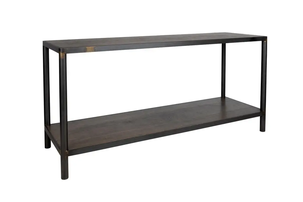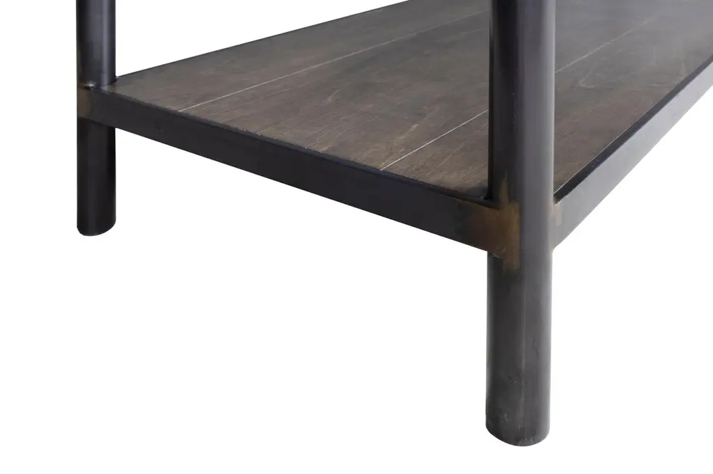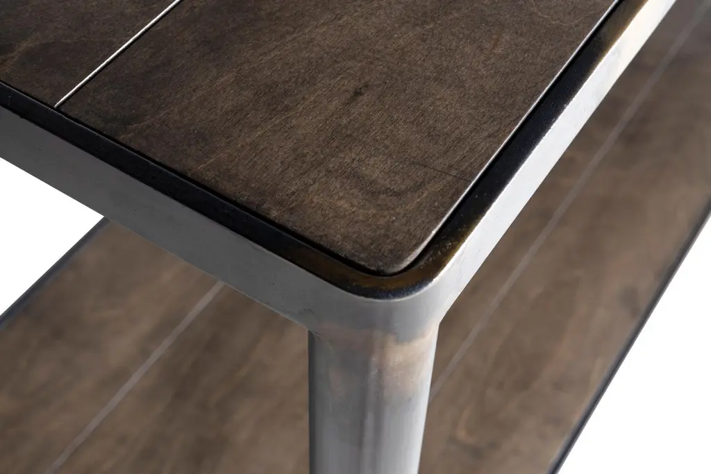 Modern Industrial Console With Argentina Birch Finished Wood And Ebonzied Steel