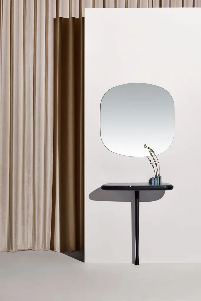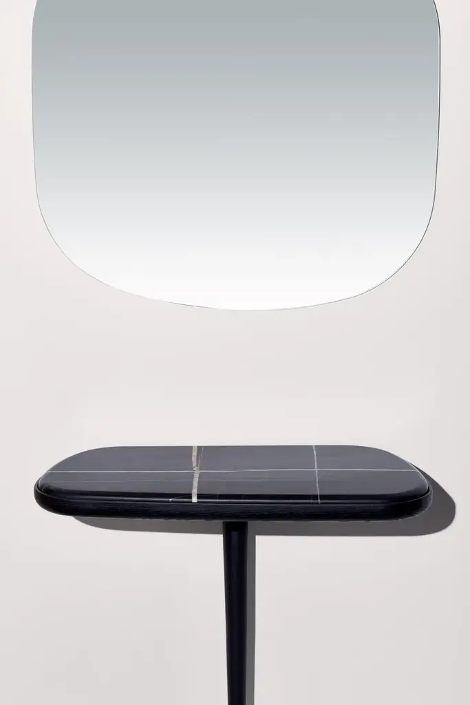 MOMENTS is a Sahara Noir marble and black stained ash console table, a practical auxiliary furniture for hallways and entrances, hotels or restaurants. With organic lines and simple shapes, it invites you to display small objects, books, flowers or perfumes on it. Accompanied by a mirror, it can acquire the function of a dressing table. A good proposal to personalize any room.Materials:- Walnut and Emperador marble (CNM);- Black stained ash and Sahara Noir marble (CNBM).