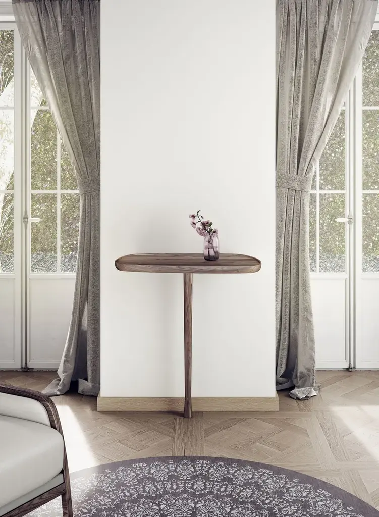 MOMENTS is a wooden consolle and is a practical auxiliary furniture for hallways and entrances, hotels or restaurants. With organic lines and simple shapes, it invites you to display small objects, books, flowers or perfumes on it. Accompanied by a mirror, it can acquire the function of a dressing table. A good proposal to personalize any room. Materials: Walnut