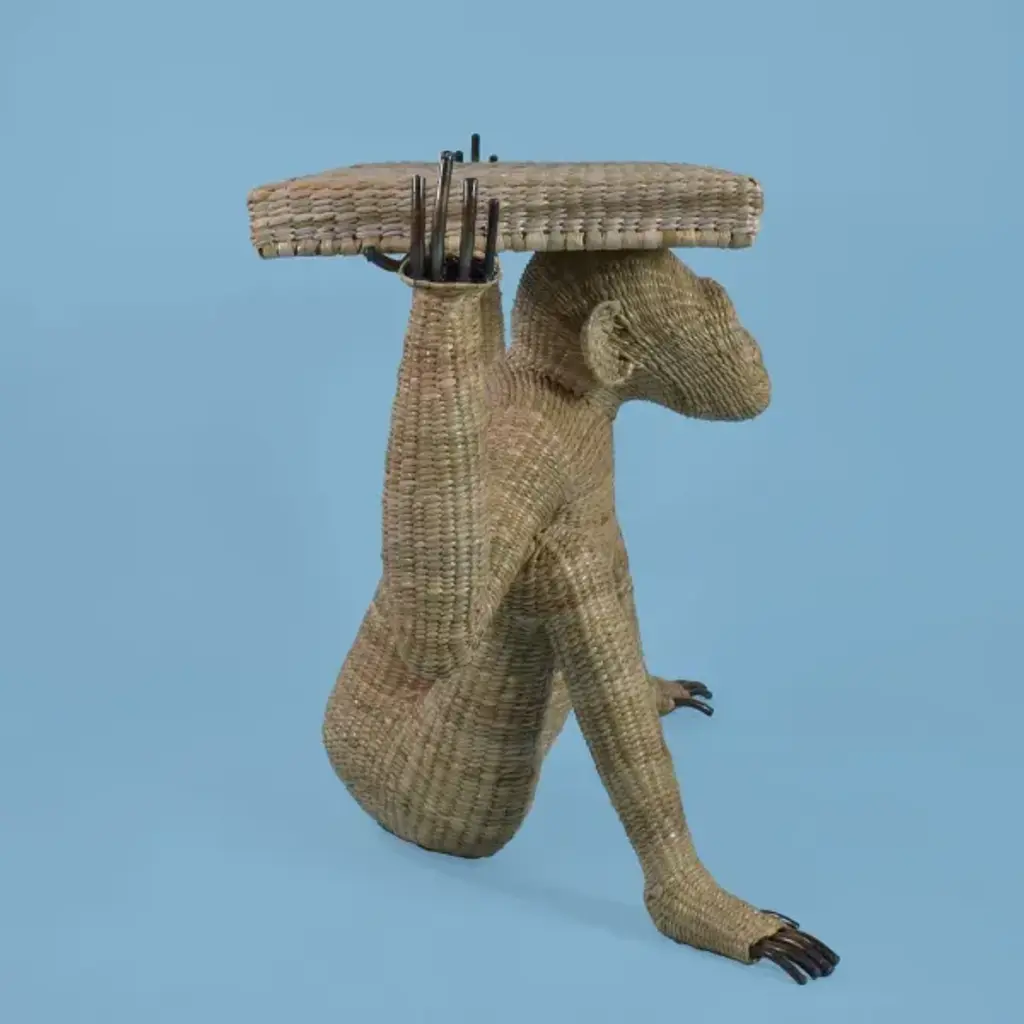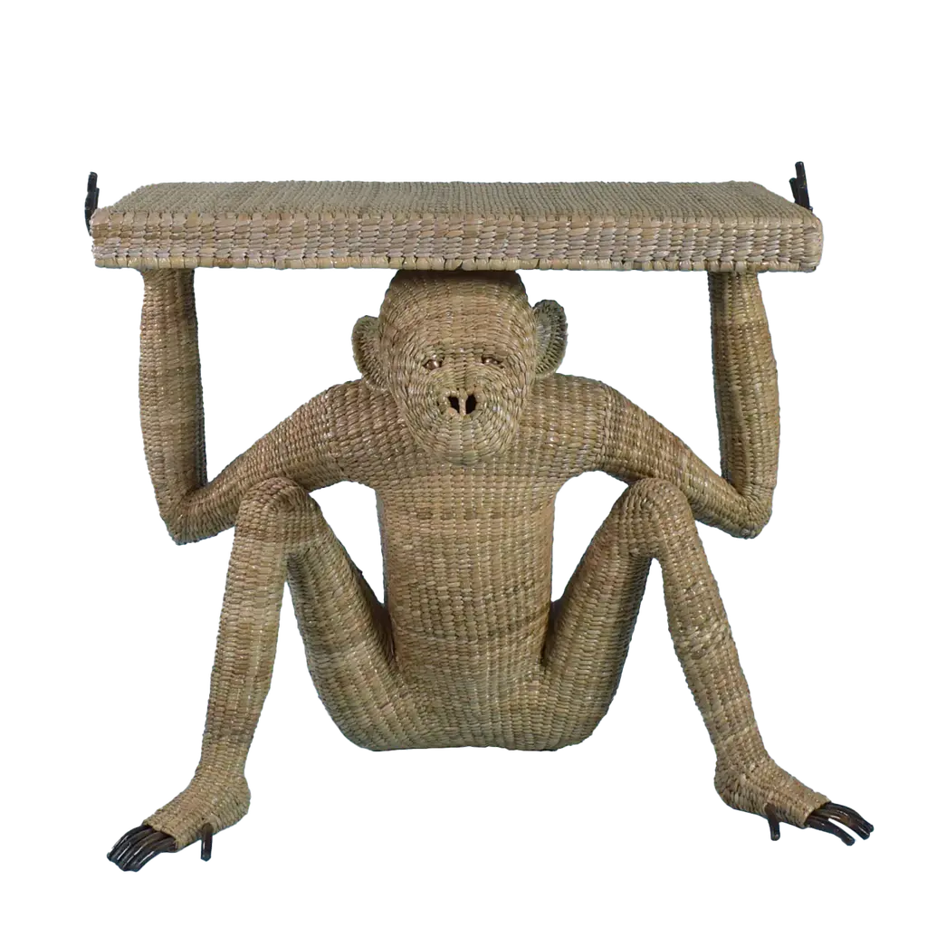 Woven Rattan Monkey Console Table by artist Mario Lopez Torres in nice as found condition. There is minor wear to the hand-made rattan. Signed Mario Lopez Torres Est. 1974. (see photos)