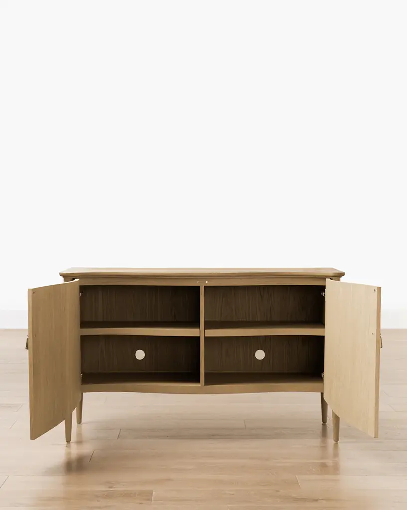 Made from white oak with details that speak to its craftsmanship, our Moorland Console is both stately and intriguing. The curved form of this wood console table brings a unique and modern feel to your space, adding subtle detail with its natural material .