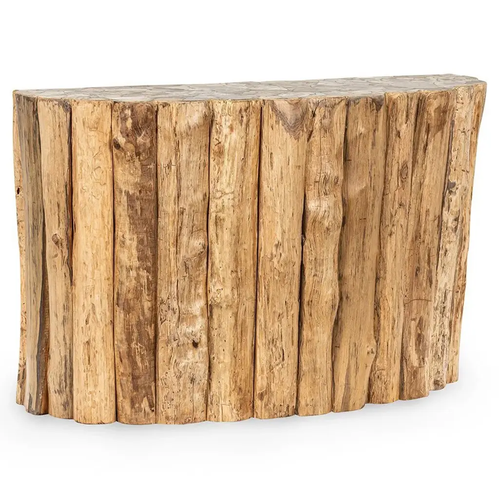 Nala Coastal Beach Petrified Teak Wood Console Table