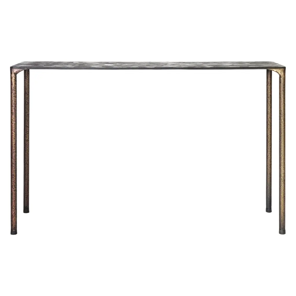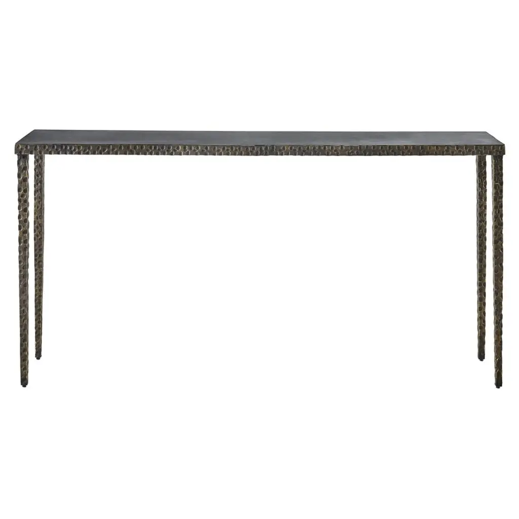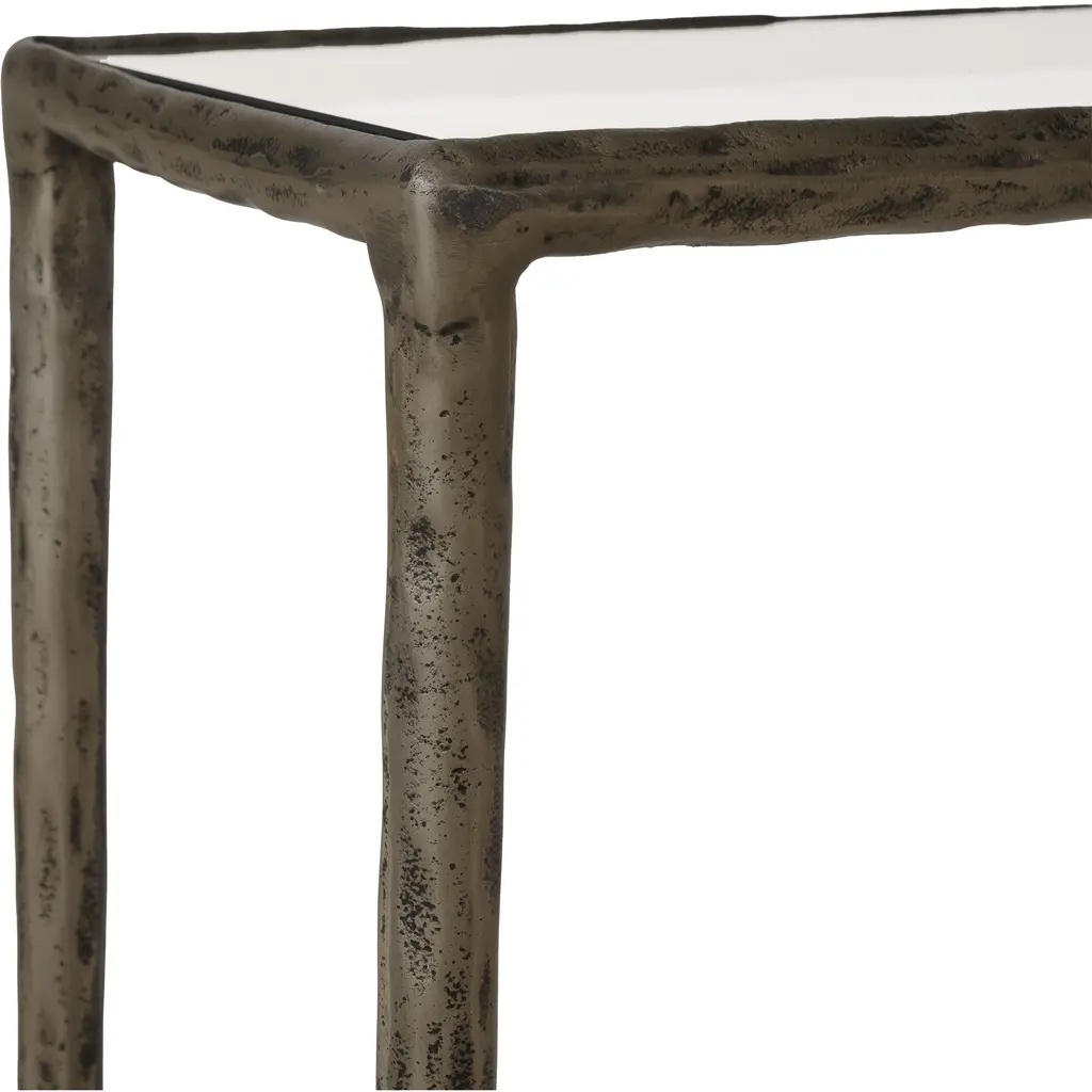 An excellent way to fill small spaces and add function to a room, this console table will also help inject personality to any transitional interior. Designed using cast aluminum and tempered glass for strength and an antique brass patina for a classic touch, this stylish table is a great pick for placing in an entryway, hallway or behind a sofa to elevate any space.