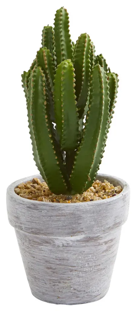With a set of three included, the artificial cactus plantse thick green stems vary in shape; one is sphere shaped, another contains a few rounded heads, and the third is oval shaped. To give your office space an arid desert look, arrange this set of three together on a bookcase or console table. You can also place them separately throughout the room to complement other flowering plants, books, and furniture pieces.