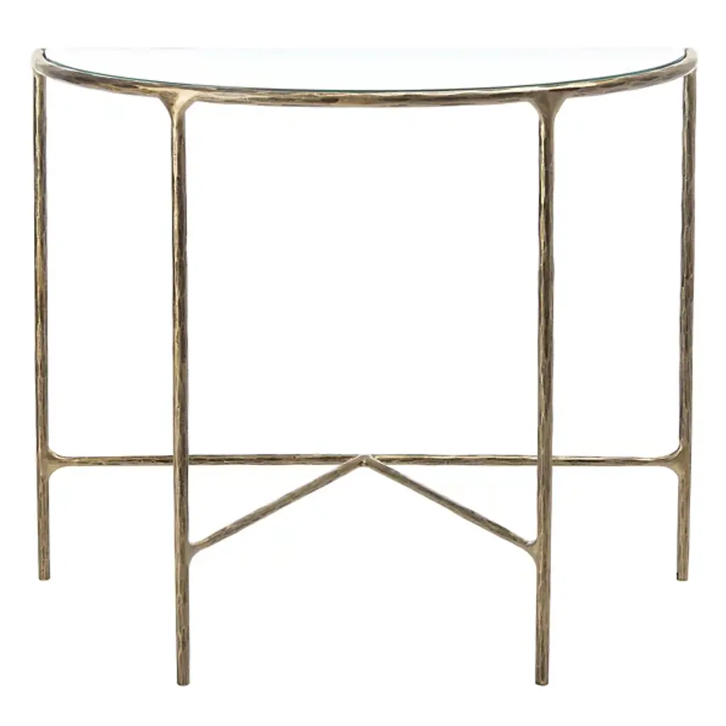 The Nelinha Console Table from Alder & Ore exudes rustic modern charm. Designed with exquisite detail, this console table is composed of high-quality materials that lend both style and durability. Its iron and brass frame is meticulously made with a linear framework, keeping the table’s legs interconnected for added stability. Topped with tempered glass, this table is as elegant as it is functional. Nelinha is a versatile addition that complements your home décor.