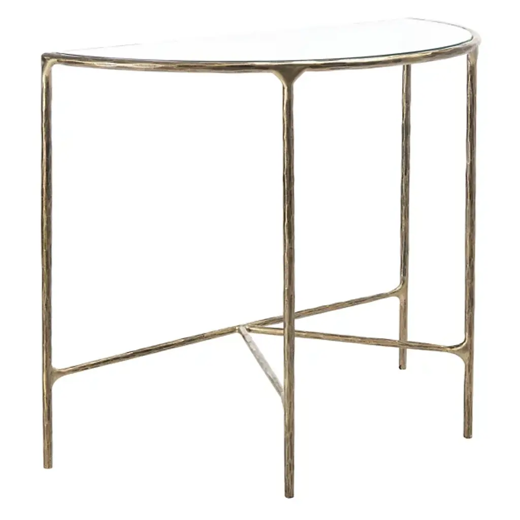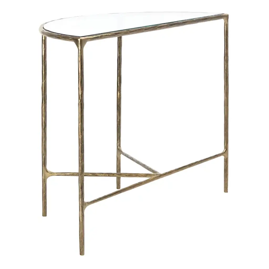 The Nelinha Console Table from Alder & Ore exudes rustic modern charm. Designed with exquisite detail, this console table is composed of high-quality materials that lend both style and durability. Its iron and brass frame is meticulously made with a linear framework, keeping the table’s legs interconnected for added stability. Topped with tempered glass, this table is as elegant as it is functional. Nelinha is a versatile addition that complements your home décor.