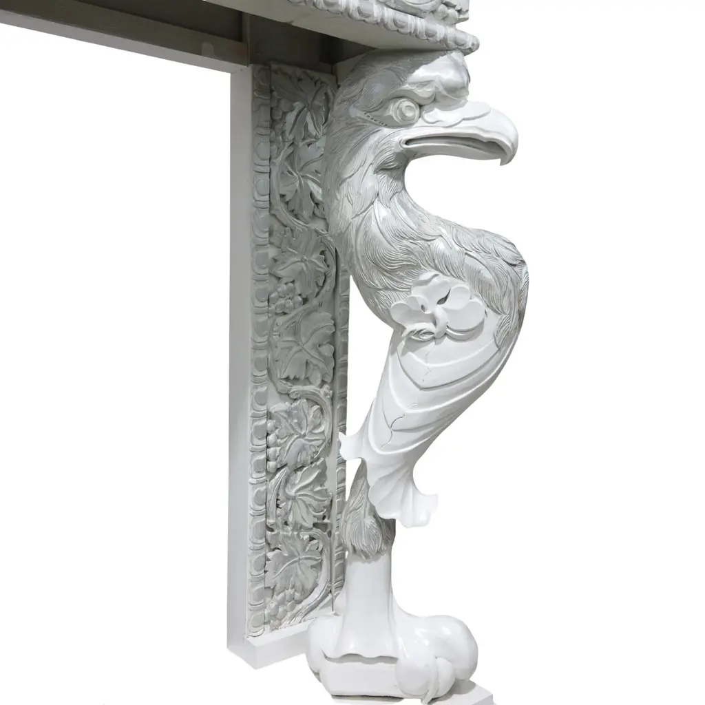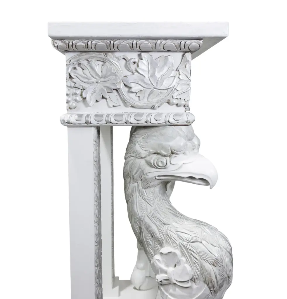 Neoclassical White Console Table With Silver-Gilt Carvings And Mythical Bird Supports