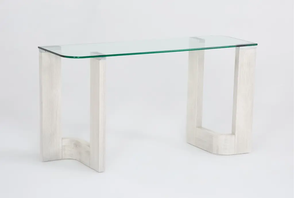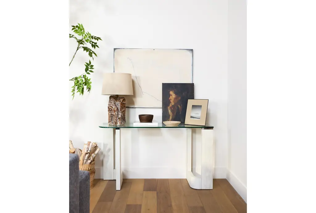 Neptune Natural 52" Wide Glass Top & Wood Base Entryway Console Table