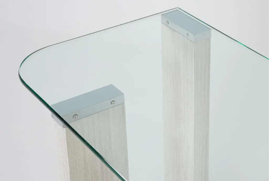 The Neptune Natural 52" Wide Glass Top & Wood Base Entryway Console Table is the perfect addition to your entryway or living room. Its contemporary design features a beautiful combination of pine solids and glass, adding a touch of sophistication to any space. This rectangle-shaped table is designed for easy cleaning and durability.