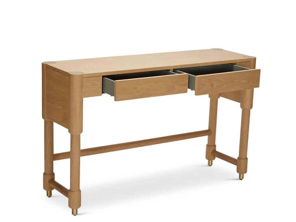 The niguel console features brass cap feet, a brass cross stretcher, and lacquered interior drawers. The Lawson-Fenning Collection is designed and handmade in Los Angeles, California. Reach out to discover what options are currently in stock.