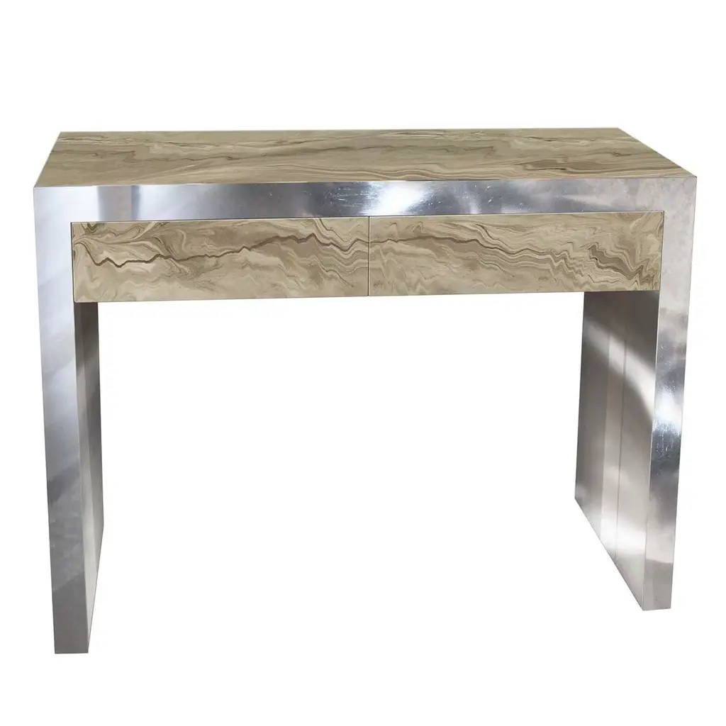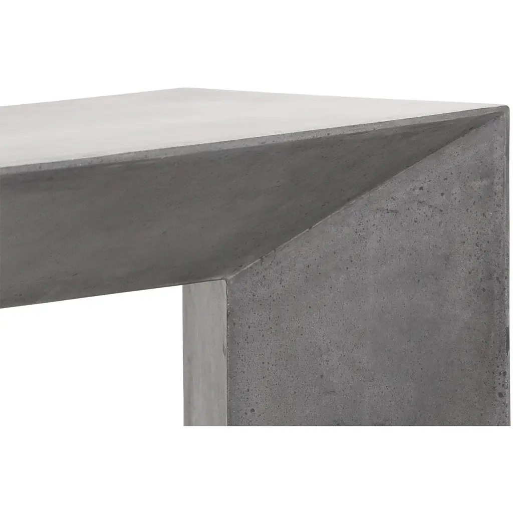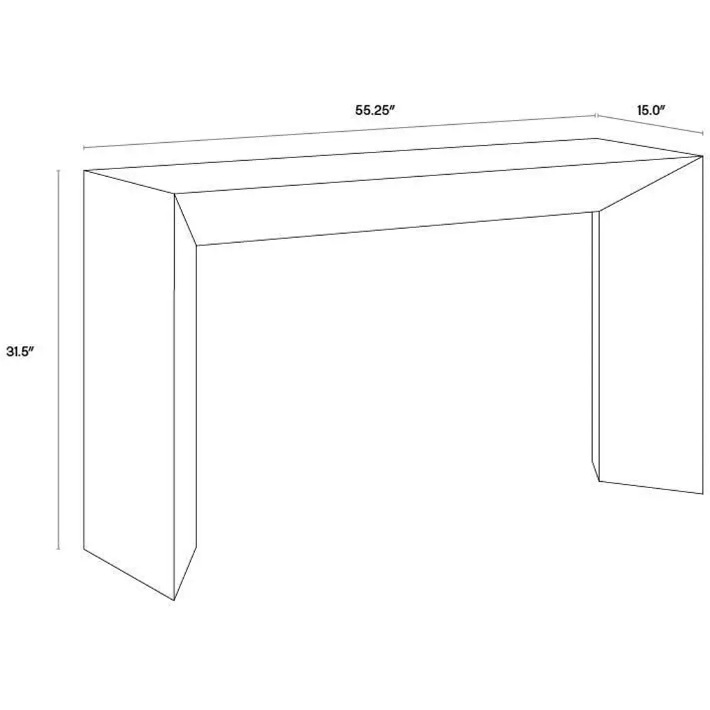 Simple and refined, the concrete console table has sharp lines that create visual interest towards the inner frame.