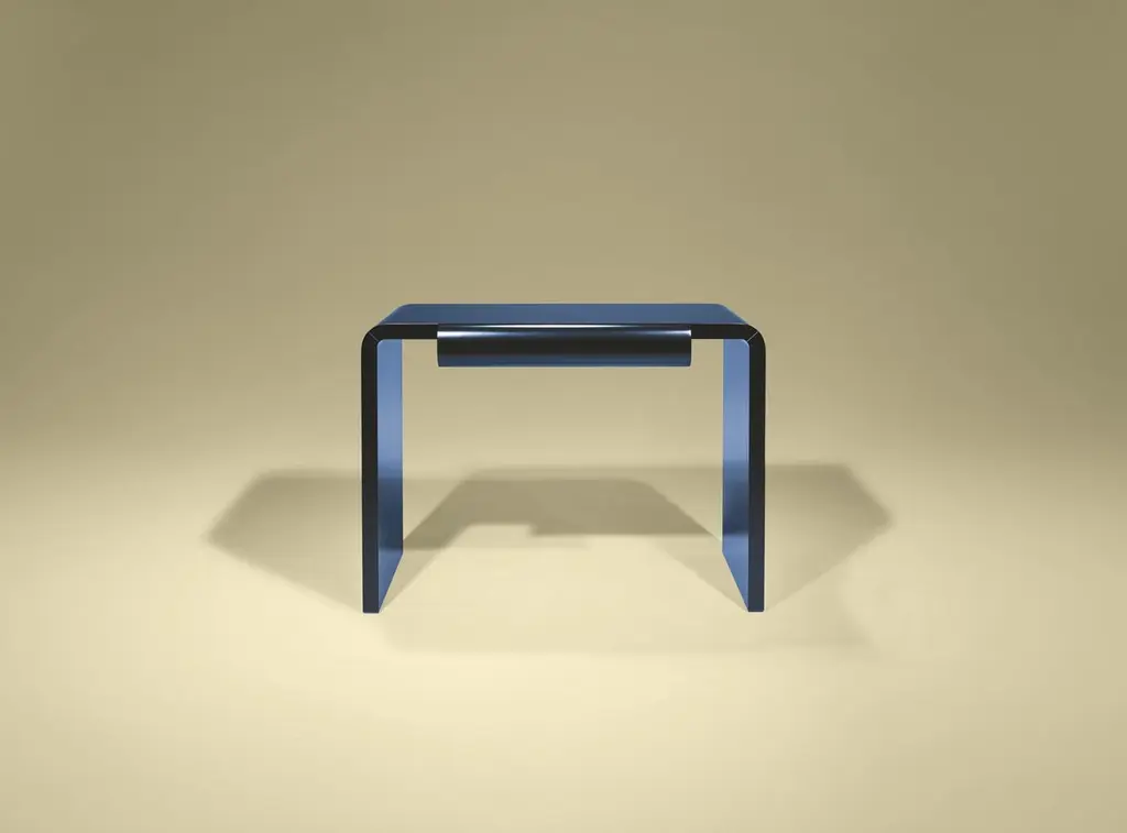 Console table in blue lacquer with one drawer.Bespoke / customizableIdentical shapes with different sizes and finishings.All RAL colors available. (Mate / half gloss / gloss).