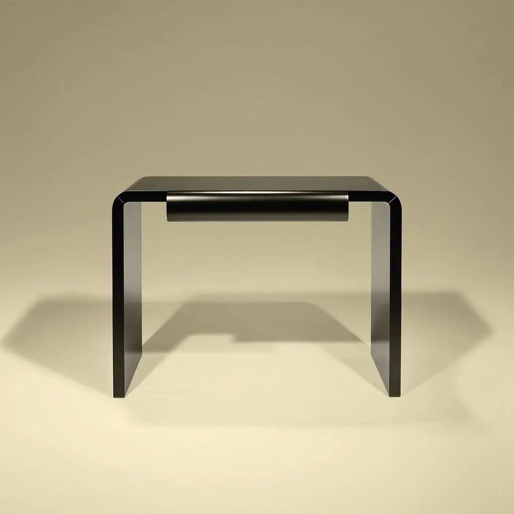 Console Table in black lacquer with one drawer and grey Partridge eye finish.Bespoke / customizableIdentical shapes with different sizes and finishings.All RAL colors available. (Mate / half gloss / gloss).