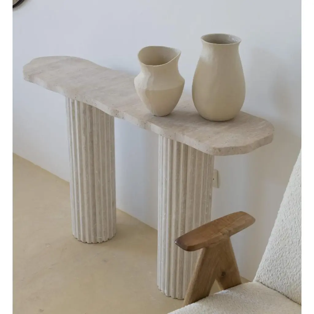 Olympia Rectangular Top 100 Muted Beige Travertine Console Table By Beije Avenue
