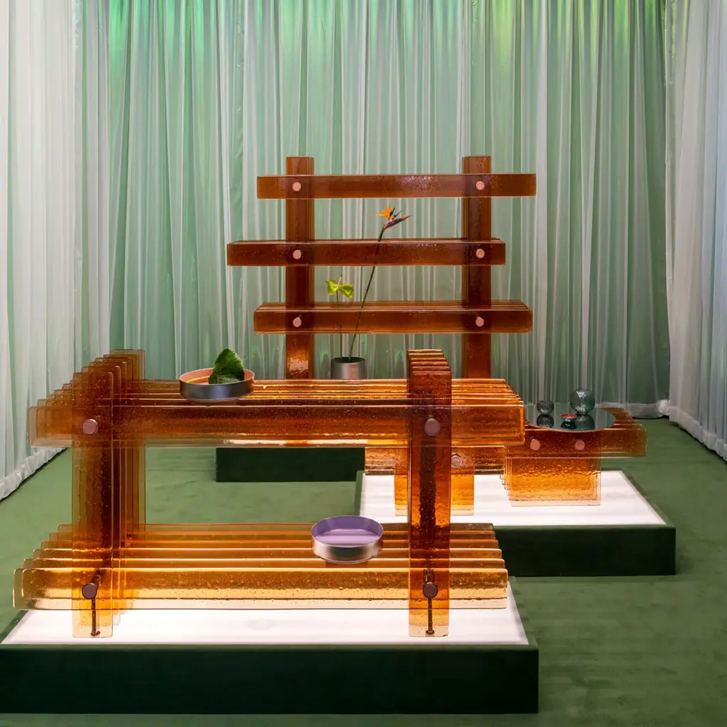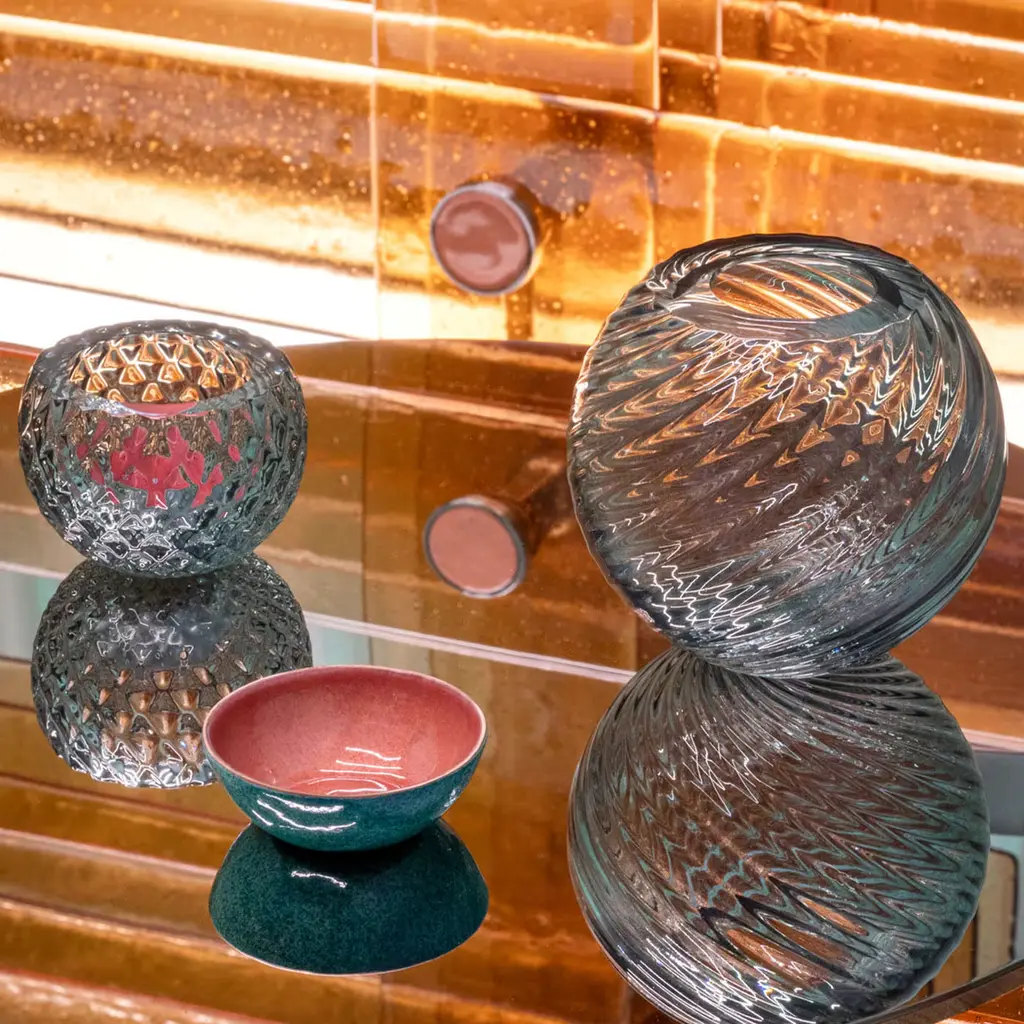 The Ossimori collection, a collaboration between Incalmi and Debonademeo, extends to include a coffee table, continuing the theme of contrasting primary materials that engage the senses and perception. This smaller, compact version retains the juxtaposition concept found in the bookcase and console table and is adorned with the same exquisite enameled copper details. For further information, please contact the concierge service.