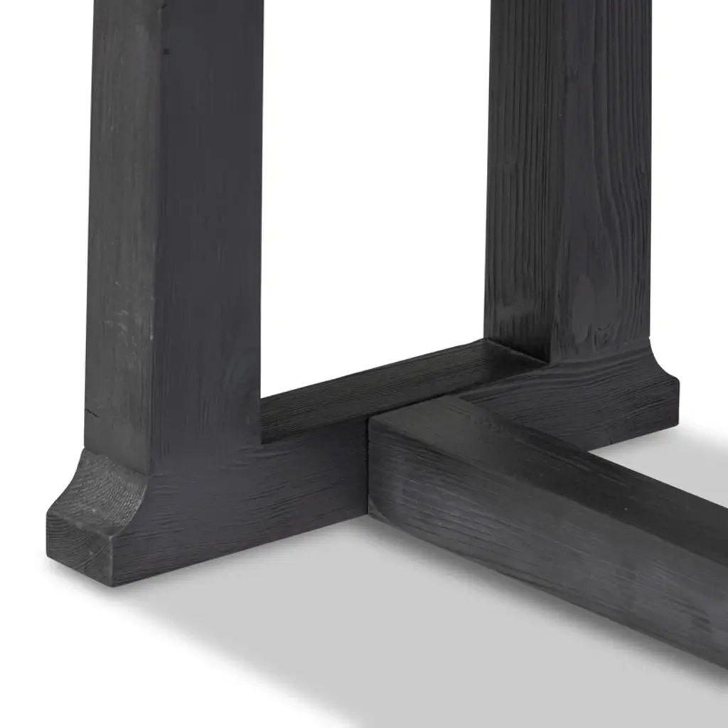 Bring a traditional sense to the entryway. Finished in a warm honey hue, a trestle-style base of solid pine supports a rectangular top of pine, waxed and bleached for a rustic look with natural depth.