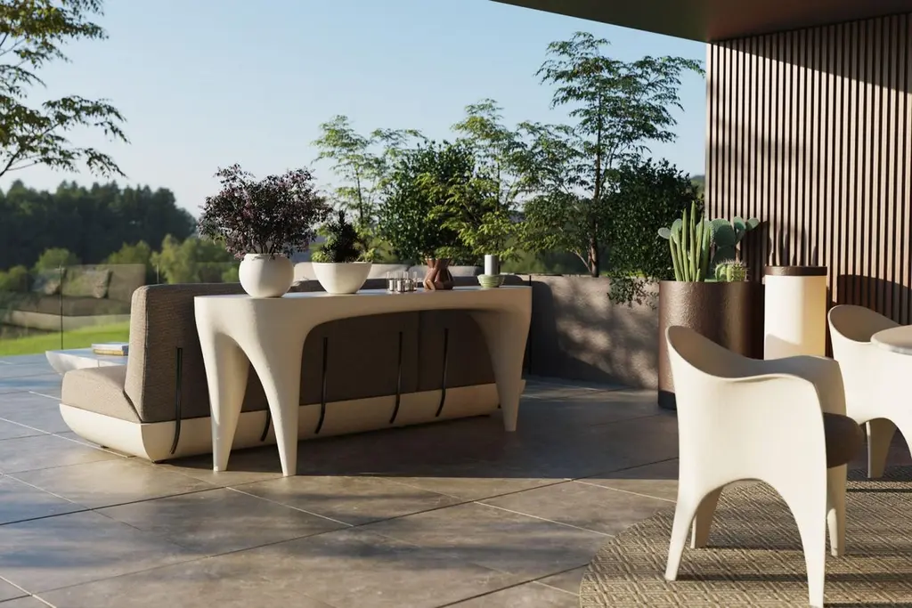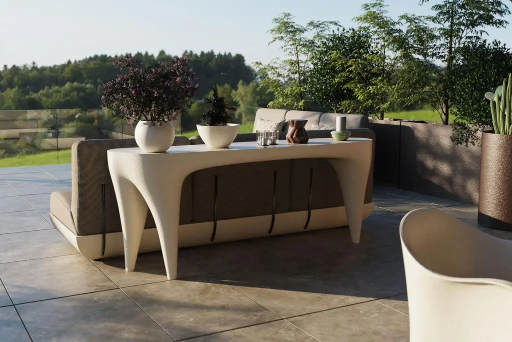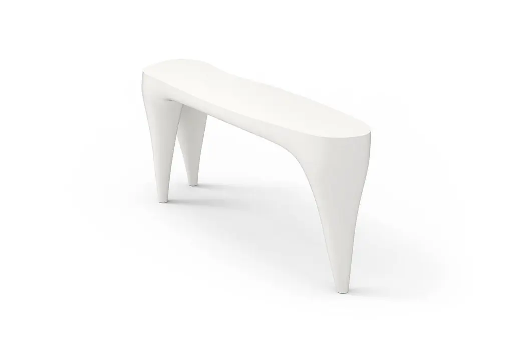 Contemporary outdoor/indoor console table built with resin reinforced fiberglass. This highly resistant material is suitable for all weather conditions with extreme temperatures. The table is offered in matte white lacquer finish.This piece is offered in any RAL color, standard finishes and select metallic finishes, contact us for enquire about finish and size customizations.Custom made cover is available upon requestWe do our best to expedite production and to ship and deliver product within the listed lead time, however current lead times might be longer due to global shipping backlog and delays. These delays are out of our control and cannot be a reason to cancel an order.