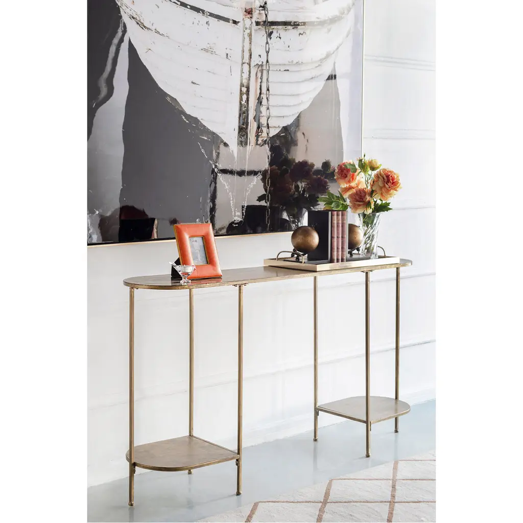 Oval 57.1 X 11.8 Inch Antique Gold Console Table
