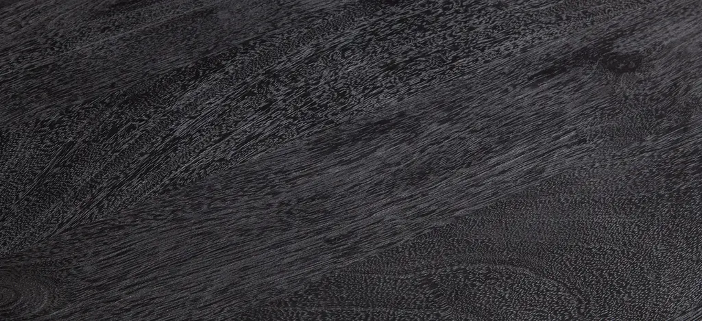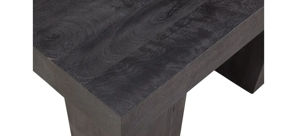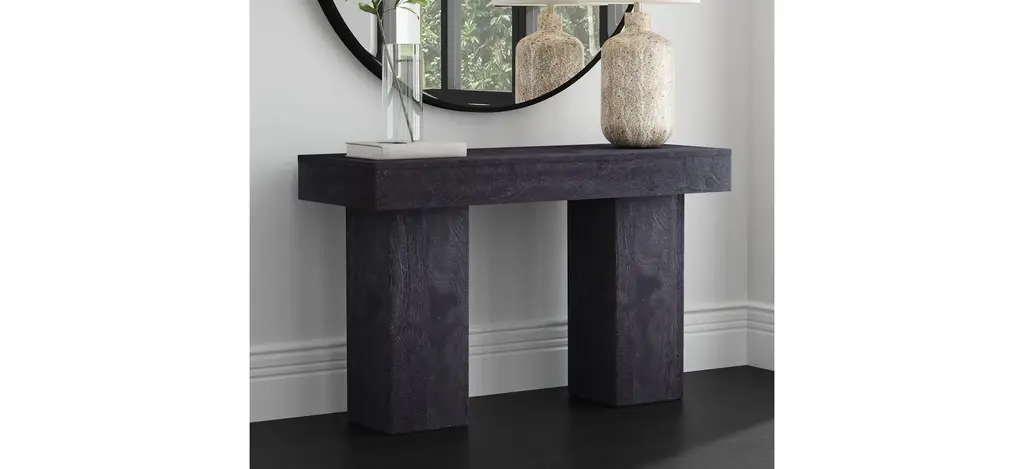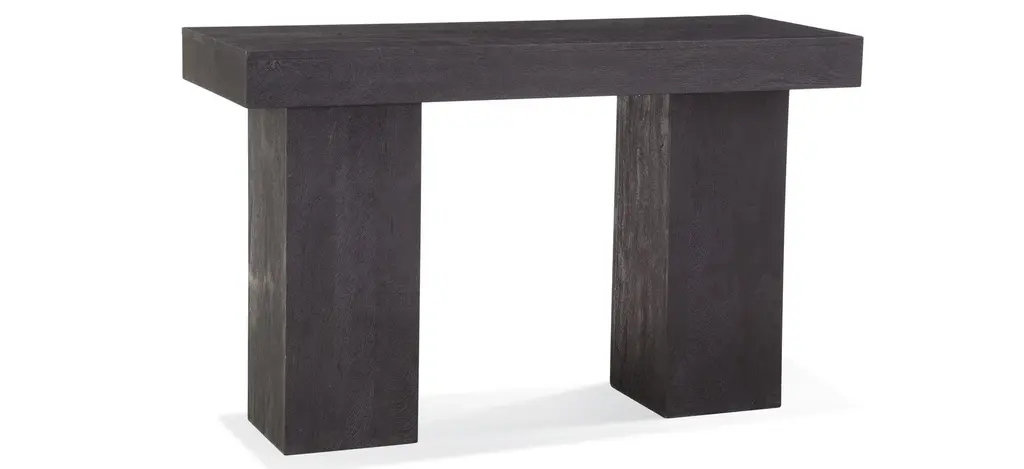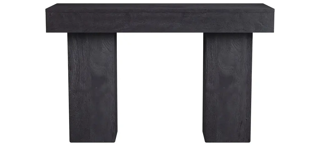 The Padula Console Table features clean lines in a solid mango construction with a dusty black finish.