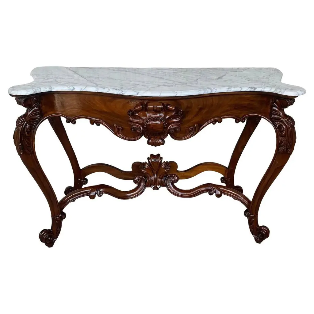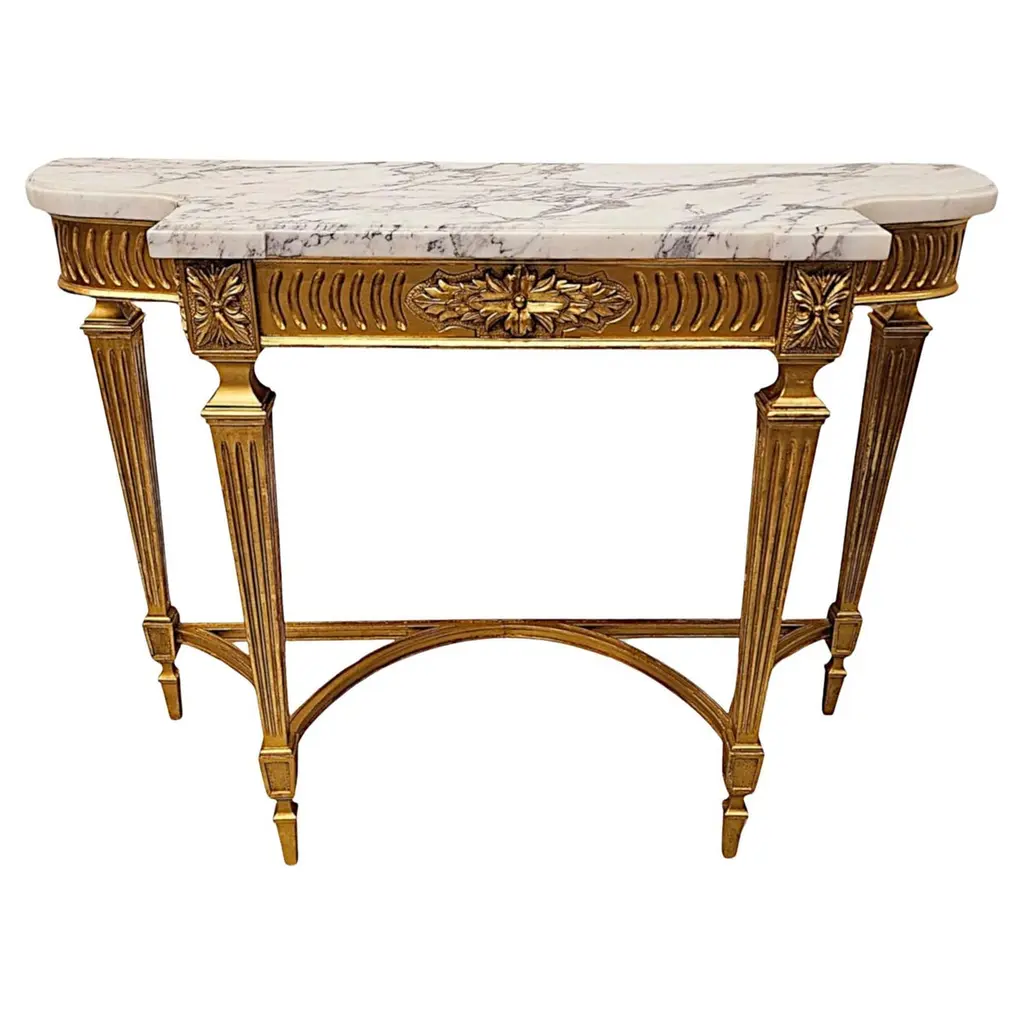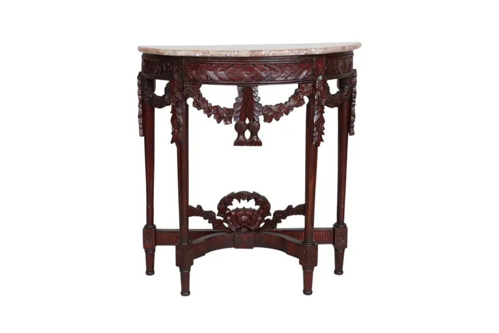 Pair French 19th/20th Century Empire Style Demi-Lune Console Table, Attr. Forest