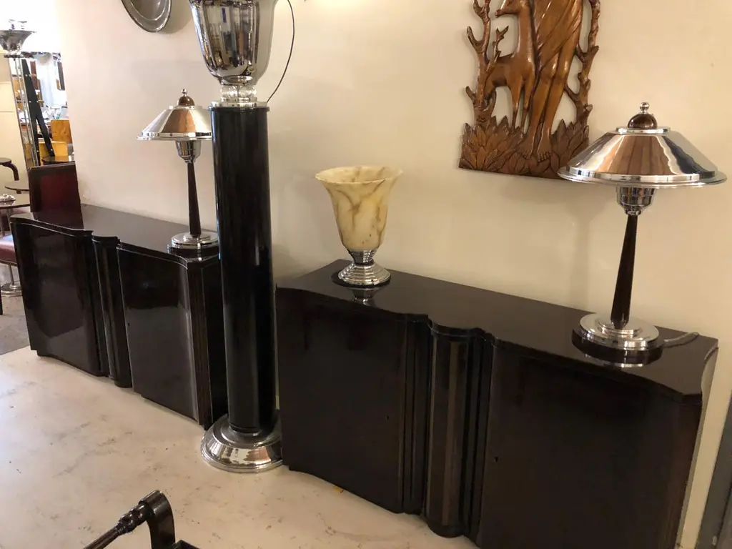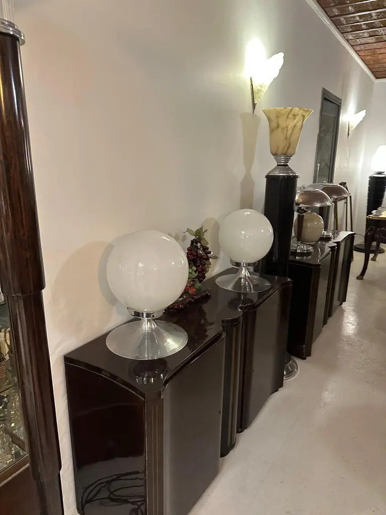 ConsoleMaterial: Wood and glassFrance.We have specialized in the sale of Art Deco and Art Nouveau and Vintage styles since 1982. If you have any questions we are at your disposal.Pushing the button that reads 'View All From Seller'. And you can see more objects to the style for sale.Why are there so many antiques in Argentina?In the 1880 – 1940 there was a grate wave of immigration encouraged by the periods of war that were taking place.1st World War took place between 1914 and 19182nd World War took place between 1939 and 1945 The immigrants options were New York or Buenos Aires. Tickets were cheap and in Buenos Aires they were welcomed with open arms, as it was a country where everything was still to be done.Argentina was the country of new opportunities, labour was needed and religious freedom was assured, in many cases the of the family travel first until they were settled and then the rest of the family members join them.In the immigrant museum “Ellis Island Immigrant Building” in New York you can se the promotional posters of the boats that would take them to a new life.Between the years 1895 and 1896 , Argentina had the highest DGP (gross domestic product) per capita in the world according to the Maddison Historical Statistics index, this situation arose due to the large amount of food being exported to European countries, which were at war.The Argentinean ships left the port of Buenos Aires with food, but they returned with furniture, clothes and construction elements, (it´s common to see this the old buildings of the historic neighbourhood of San Telmo, the beams with the inscription “Made in England)”, as well as many markets that were built in Buenos Aires, such us the San Telmo Market, whose structure was brought by ship and afterwards assembled in 900 Defensa Street. With the great influence of European immigrants living in the country, the children of the upper classes travelled to study in France, resulting in the inauguration of “La Maison Argentinienne”, on 27th of June 1928, in the international city of Paris, which hosted many Argentinians that were studying in Frace. It´s the fourth house to be built after France, Canada and Belgium, being the first Spanish-speaking one. Still in place today (17 Bd Jourdan, 75014, Paris, France). Many of the children of these wealthy families who attended international art exhibitions, museums and art courses abroad, took a keen interest in the European style. This is why Buenos Aires was at the time referred as “The Paris of South America”.Between the years 1890 and 1920 more than a hundred Palaces were built on Alvear Avenue the most exclusive avenue in Buenos Aires. Today some of these palaces have been transformed into museums, hotels and embassies.In the year 1936, the Kavanagh building was inaugurated, it was the tallest reinforced concrete building in South America.During 1994 the American Society of Civil Engineers distinguished it as an “international engineering milestone”, and it´s now considered a World Heritage of Modern Architecture.At the time was common to hire foreign architects such as Le Corbusier, who visited Buenos Aires/Argentina in 1929 and in 1948 he drew up the blueprints for a house built in La Plata City (which was declared a World Heritage Site).In 1947, the Hungarian architect Marcelo Breuer designed “Parador Ariston” in the seaside city of Mar del Plata. After an Argentinean student at Harvard University convinced him to come to Argentina. He worked on an urban development project in the Casa Amarilla, area of La Boca. The Ukrainian architect, Vladimiro Acosta, arrives in Argentina in 1928 and worked as an architect until que moved to Brazil.Antonio Bonet, a Spanish architect who worked with Le Corbusier in Paris, arrives in Argentina in 1937, where he carried out several architectural works and in 1938 designs the well-known BFK chair.Andres Kálnay, of Hungarian origin, made around 120 architectural masterpieces, among which the former Munich brewery stands out, he even made the furniture’s design. The German architect, Walter Gropius, director of the Bauhaus, lived in Argentina, where he wrote articles for “Sur” magazine and founded in Buenos Aires, an architectural firm with Franz Möller, who was also an architect, where he built two houses.At the same time several famous designers decided to immigrate to Argentina, among them we can find the well-known French designer, Jean-Michel Frank, who arrived in the country in 1940 and also worked for the Rockefeller family.Special pieces were made, which were sold exclusively in the country, such as the well-known German company “WMF”, who sold their products by catalogue, which were chosen by the ladies of high society in the list of wedding gifts, as well as the pieces designed by Christofle. The Swiss sculptor Alberto Giacometti, made special pieces for Argentinean mansions.In 1904 the first Jansen branch outside Paris was established in Buenos Aires, as the Argentinean clientele demanded a large amount of furniture, from the end of the 19th century to the mid-20th century.In 1970, the brand Rigolleau Argentina made pieces authorised by Lalique.The brands Maple and Thompson also set up shop in the country.The French plastic artist, Marcel Duchamp moved to Argentina in 1918-1919.Glass signed Gallé, Charder, Leverre, Schneider, Muller and other French firms. They were bought in flower shops and were given to ladies with beautiful floral arrangements. Some furniture manufacturers travelled to international fairs and bough the patterns to produce the furniture in Argentina, such as the furniture firm Englander and Bonta, who bought the patterns ins Italy.It is worth mentioning that in Argentina we have the largest community of Italians outside of Italy, as it is estimated that 70 percent of the inhabitants have at least one Italian descendant, followed by Spanish immigrants.The most Important furniture stores in Argenti