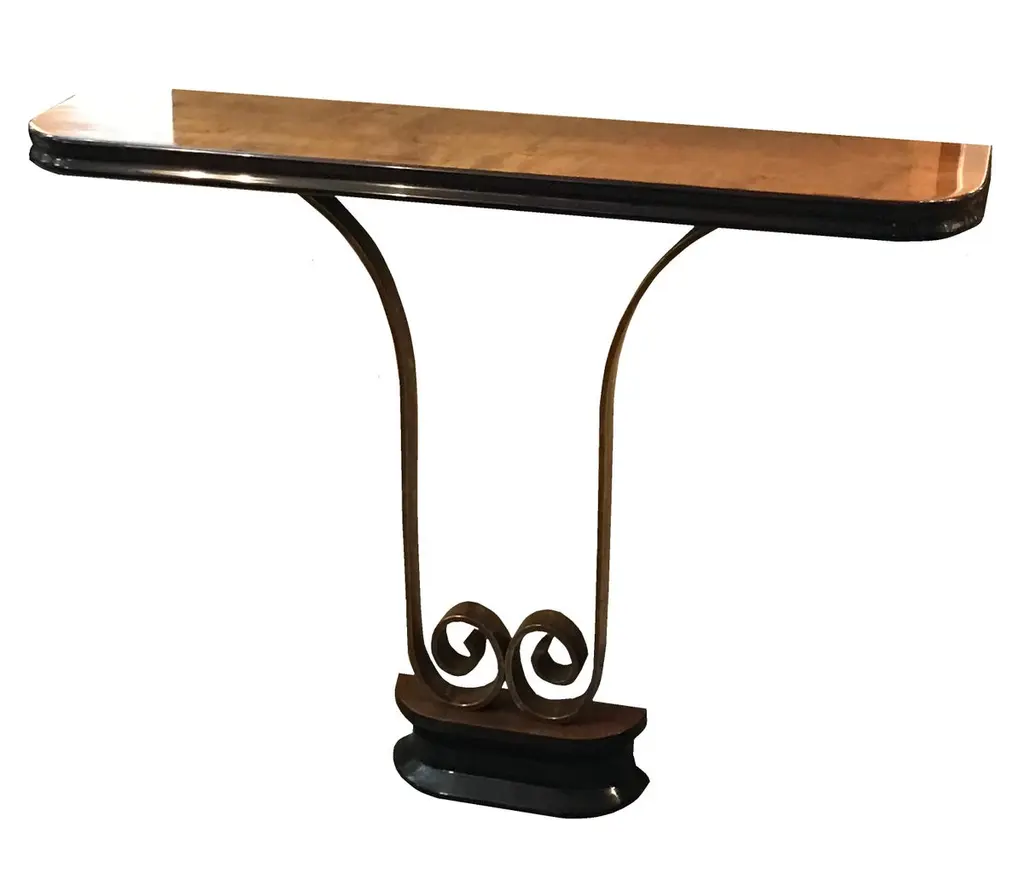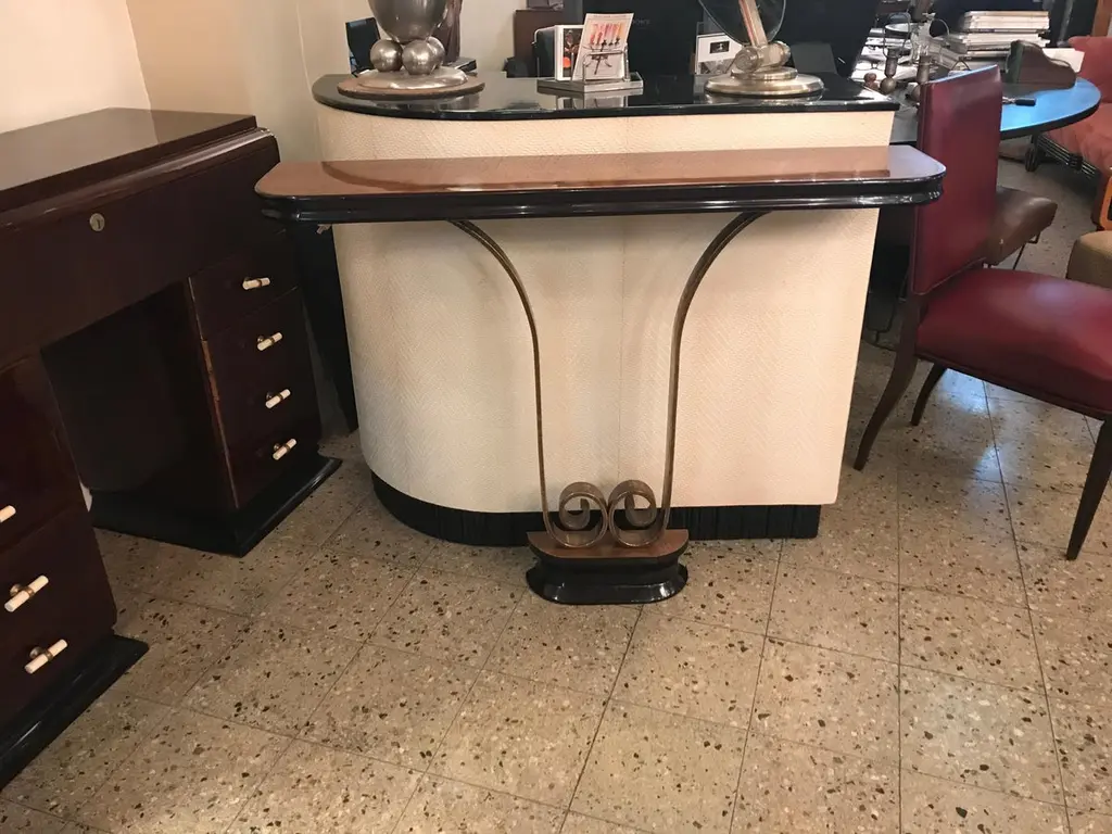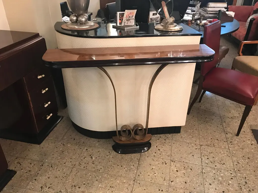 ConsoleMaterial: Wood and bronzeFrance.We have specialized in the sale of Art Deco and Art Nouveau and Vintage styles since 1982. If you have any questions we are at your disposal.Pushing the button that reads 'View All From Seller'. And you can see more objects to the style for sale.Why are there so many antiques in Argentina?In the 1880 – 1940 there was a grate wave of immigration encouraged by the periods of war that were taking place.1st World War took place between 1914 and 19182nd World War took place between 1939 and 1945 The immigrants options were New York or Buenos Aires. Tickets were cheap and in Buenos Aires they were welcomed with open arms, as it was a country where everything was still to be done.Argentina was the country of new opportunities, labour was needed and religious freedom was assured, in many cases the of the family travel first until they were settled and then the rest of the family members join them.In the immigrant museum “Ellis Island Immigrant Building” in New York you can se the promotional posters of the boats that would take them to a new life.Between the years 1895 and 1896, Argentina had the highest DGP (gross domestic product) per capita in the world according to the Maddison Historical Statistics index, this situation arose due to the large amount of food being exported to European countries, which were at war.The Argentinean ships left the port of Buenos Aires with food, but they returned with furniture, clothes and construction elements, (it´s common to see this the old buildings of the historic neighbourhood of San Telmo, the beams with the inscription “Made in England)”, as well as many markets that were built in Buenos Aires, such us the San Telmo Market, whose structure was brought by ship and afterwards assembled in 900 Defensa Street. With the great influence of European immigrants living in the country, the children of the upper classes travelled to study in France, resulting in the inauguration of “La Maison Argentinienne”, on 27th of June 1928, in the international city of Paris, which hosted many Argentinians that were studying in Frace. It´s the fourth house to be built after France, Canada and Belgium, being the first Spanish-speaking one. Still in place today (17 Bd Jourdan, 75014, Paris, France). Many of the children of these wealthy families who attended international art exhibitions, museums and art courses abroad, took a keen interest in the European style. This is why Buenos Aires was at the time referred as “The Paris of South America”.Between the years 1890 and 1920 more than a hundred Palaces were built on Alvear Avenue the most exclusive avenue in Buenos Aires. Today some of these palaces have been transformed into museums, hotels and embassies.In the year 1936, the Kavanagh building was inaugurated, it was the tallest reinforced concrete building in South America.During 1994 the American Society of Civil Engineers distinguished it as an “international engineering milestone”, and it´s now considered a World Heritage of Modern Architecture.At the time was common to hire foreign architects such as Le Corbusier, who visited Buenos Aires/Argentina in 1929 and in 1948 he drew up the blueprints for a house built in La Plata City (which was declared a World Heritage Site).In 1947, the Hungarian architect Marcelo Breuer designed “Parador Ariston” in the seaside city of Mar del Plata. After an Argentinean student at Harvard University convinced him to come to Argentina. He worked on an urban development project in the Casa Amarilla, area of La Boca. The Ukrainian architect, Vladimiro Acosta, arrives in Argentina in 1928 and worked as an architect until que moved to Brazil.Antonio Bonet, a Spanish architect who worked with Le Corbusier in Paris, arrives in Argentina in 1937, where he carried out several architectural works and in 1938 designs the well-known BFK chair.Andres Kálnay, of Hungarian origin, made around 120 architectural masterpieces, among which the former Munich brewery stands out, he even made the furniture’s design. The German architect, Walter Gropius, director of the Bauhaus, lived in Argentina, where he wrote articles for “Sur” magazine and founded in Buenos Aires, an architectural firm with Franz Möller, who was also an architect, where he built two houses.At the same time several famous designers decided to immigrate to Argentina, among them we can find the well-known French designer, Jean-Michel Frank, who arrived in the country in 1940 and also worked for the Rockefeller family.Special pieces were made, which were sold exclusively in the country, such as the well-known German company “WMF”, who sold their products by catalogue, which were chosen by the ladies of high society in the list of wedding gifts, as well as the pieces designed by Christofle. The Swiss sculptor Alberto Giacometti, made special pieces for Argentinean mansions.In 1904 the first Jansen branch outside Paris was established in Buenos Aires, as the Argentinean clientele demanded a large amount of furniture, from the end of the 19th century to the mid-20th century.In 1970, the brand Rigolleau Argentina made pieces authorised by Lalique.The brands Maple and Thompson also set up shop in the country.The French plastic artist, Marcel Duchamp moved to Argentina in 1918-1919.Glass signed Gallé, Charder, Leverre, Schneider, Muller and other French firms. They were bought in flower shops and were given to ladies with beautiful floral arrangements. Some furniture manufacturers travelled to international fairs and bough the patterns to produce the furniture in Argentina, such as the furniture firm Englander and Bonta, who bought the patterns ins Italy.It is worth mentioning that in Argentina we have the largest community of Italians outside of Italy, as it is estimated that 70 percent of the inhabitants have at least one Italian descendant, followed by Spanish immigrants.The most Important furniture stores in Argenti