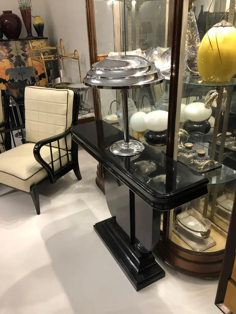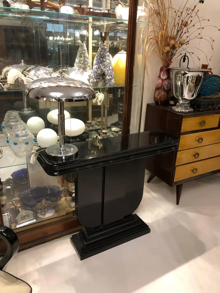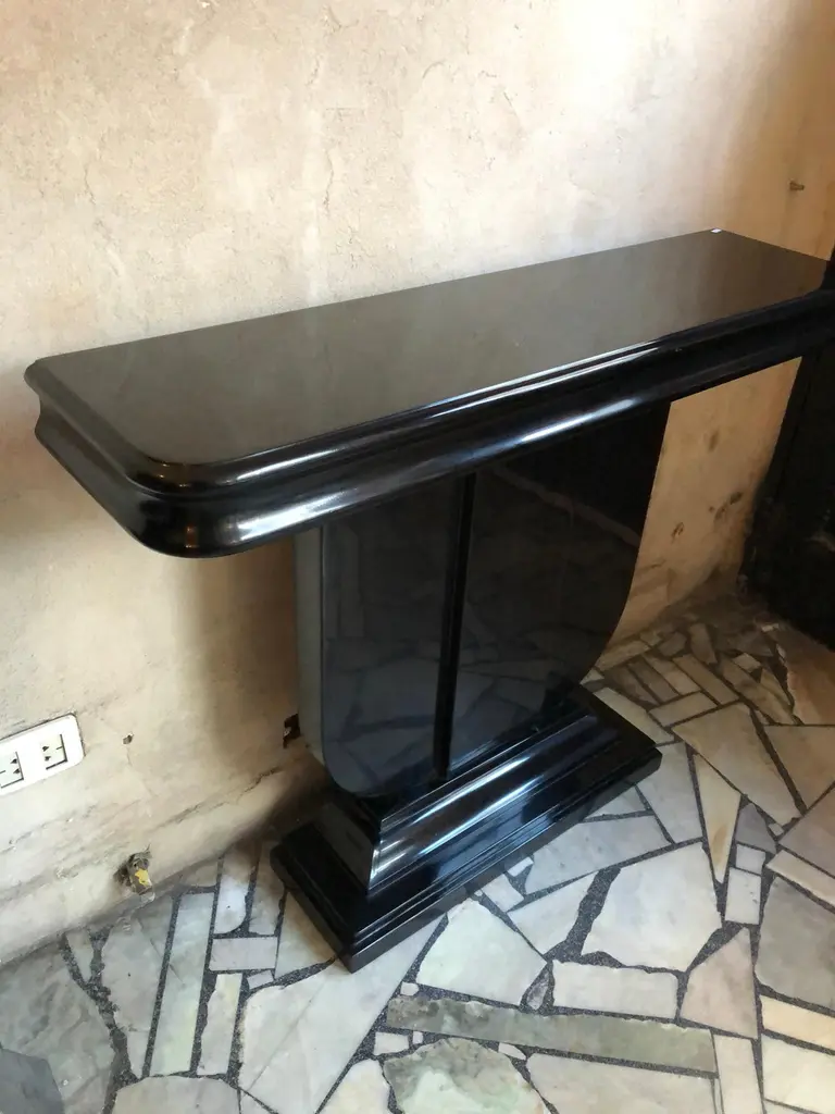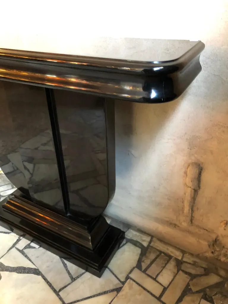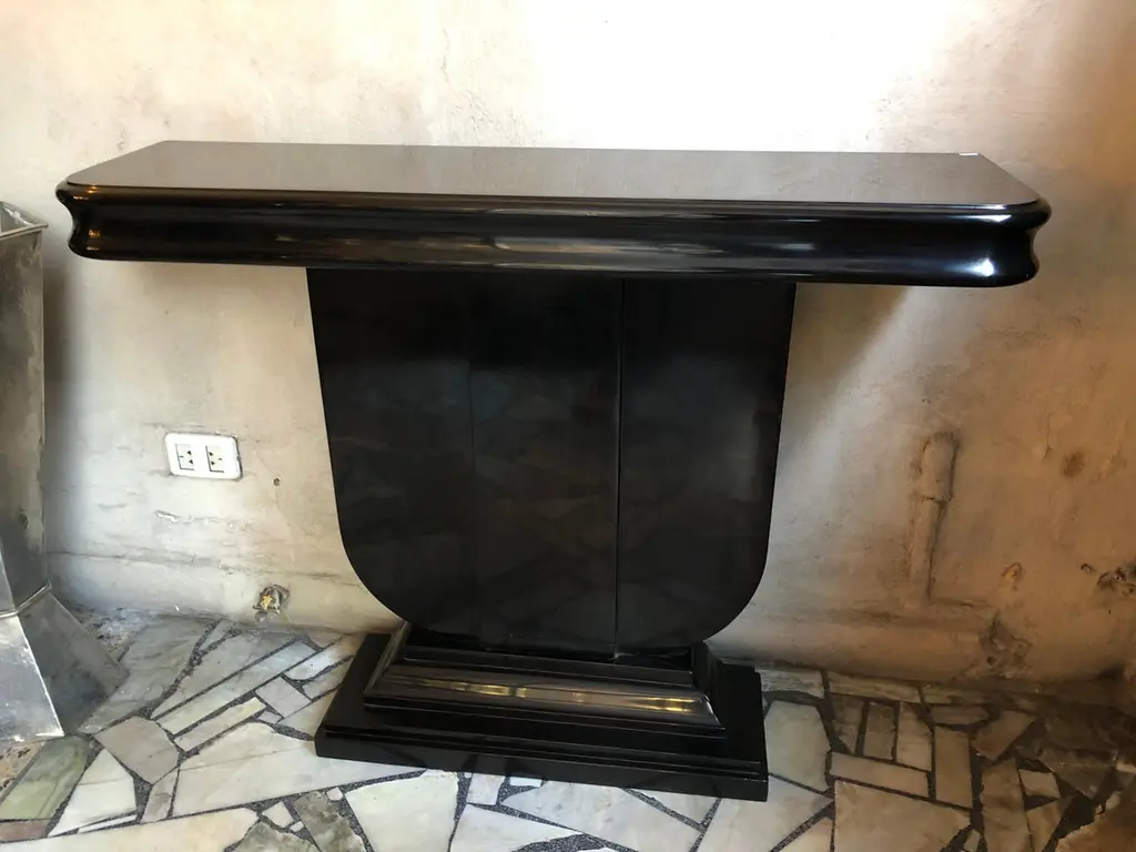 Year: 1930Country: FrenchWoodFinish: polyurethanic lacquerIt is an elegant and sophisticated console.You want to live in the golden years, this is console that your project needs.We have specialized in the sale of Art Deco and Art Nouveau styles since 1982.If you have any questions we are at your disposal.Pushing the button that reads 'View All From Seller'. And you can see more objects to the style for sale.Why are there so many antiques in Argentina?In the 1880 – 1940 there was a grate wave of immigration encouraged by the periods of war that were taking place.1st World War took place between 1914 and 19182nd World War took place between 1939 and 1945 The immigrants options were New York or Buenos Aires. Tickets were cheap and in Buenos Aires they were welcomed with open arms, as it was a country where everything was still to be done.Argentina was the country of new opportunities, labour was needed and religious freedom was assured, in many cases the of the family travel first until they were settled and then the rest of the family members join them.In the immigrant museum “Ellis Island Immigrant Building” in New York you can se the promotional posters of the boats that would take them to a new life.Between the years 1895 and 1896, Argentina had the highest DGP (gross domestic product) per capita in the world according to the Maddison Historical Statistics index, this situation arose due to the large amount of food being exported to European countries, which were at war.The Argentinean ships left the port of Buenos Aires with food, but they returned with furniture, clothes and construction elements, (it´s common to see this the old buildings of the historic neighbourhood of San Telmo, the beams with the inscription “Made in England)”, as well as many markets that were built in Buenos Aires, such us the San Telmo Market, whose structure was brought by ship and afterwards assembled in 900 Defensa Street. With the great influence of European immigrants living in the country, the children of the upper classes travelled to study in France, resulting in the inauguration of “La Maison Argentinienne”, on 27th of June 1928, in the international city of Paris, which hosted many Argentinians that were studying in Frace. It´s the fourth house to be built after France, Canada and Belgium, being the first Spanish-speaking one. Still in place today (17 Bd Jourdan, 75014, Paris, France). Many of the children of these wealthy families who attended international art exhibitions, museums and art courses abroad, took a keen interest in the European style. This is why Buenos Aires was at the time referred as “The Paris of South America”.Between the years 1890 and 1920 more than a hundred Palaces were built on Alvear Avenue the most exclusive avenue in Buenos Aires. Today some of these palaces have been transformed into museums, hotels and embassies.In the year 1936, the Kavanagh building was inaugurated, it was the tallest reinforced concrete building in South America.During 1994 the American Society of Civil Engineers distinguished it as an “international engineering milestone”, and it´s now considered a World Heritage of Modern Architecture.At the time was common to hire foreign architects such as Le Corbusier, who visited Buenos Aires/Argentina in 1929 and in 1948 he drew up the blueprints for a house built in La Plata City (which was declared a World Heritage Site).In 1947, the Hungarian architect Marcelo Breuer designed “Parador Ariston” in the seaside city of Mar del Plata. After an Argentinean student at Harvard University convinced him to come to Argentina. He worked on an urban development project in the Casa Amarilla, area of La Boca. The Ukrainian architect, Vladimiro Acosta, arrives in Argentina in 1928 and worked as an architect until que moved to Brazil.Antonio Bonet, a Spanish architect who worked with Le Corbusier in Paris, arrives in Argentina in 1937, where he carried out several architectural works and in 1938 designs the well-known BFK chair.Andres Kálnay, of Hungarian origin, made around 120 architectural masterpieces, among which the former Munich brewery stands out, he even made the furniture’s design. The German architect, Walter Gropius, director of the Bauhaus, lived in Argentina, where he wrote articles for “Sur” magazine and founded in Buenos Aires, an architectural firm with Franz Möller, who was also an architect, where he built two houses.At the same time several famous designers decided to immigrate to Argentina, among them we can find the well-known French designer, Jean-Michel Frank, who arrived in the country in 1940 and also worked for the Rockefeller family.Special pieces were made, which were sold exclusively in the country, such as the well-known German company “WMF”, who sold their products by catalogue, which were chosen by the ladies of high society in the list of wedding gifts, as well as the pieces designed by Christofle. The Swiss sculptor Alberto Giacometti, made special pieces for Argentinean mansions.In 1904 the first Jansen branch outside Paris was established in Buenos Aires, as the Argentinean clientele demanded a large amount of furniture, from the end of the 19th century to the mid-20th century.In 1970, the brand Rigolleau Argentina made pieces authorised by Lalique.The brands Maple and Thompson also set up shop in the country.The French plastic artist, Marcel Duchamp moved to Argentina in 1918-1919.Glass signed Gallé, Charder, Leverre, Schneider, Muller and other French firms. They were bought in flower shops and were given to ladies with beautiful floral arrangements. Some furniture manufacturers travelled to international fairs and bough the patterns to produce the furniture in Argentina, such as the furniture firm Englander and Bonta, who bought the patterns ins Italy.It is worth mentioning that in Argentina we have the largest community of Italians outside of Italy, as it is estimated that 70 percent of the 