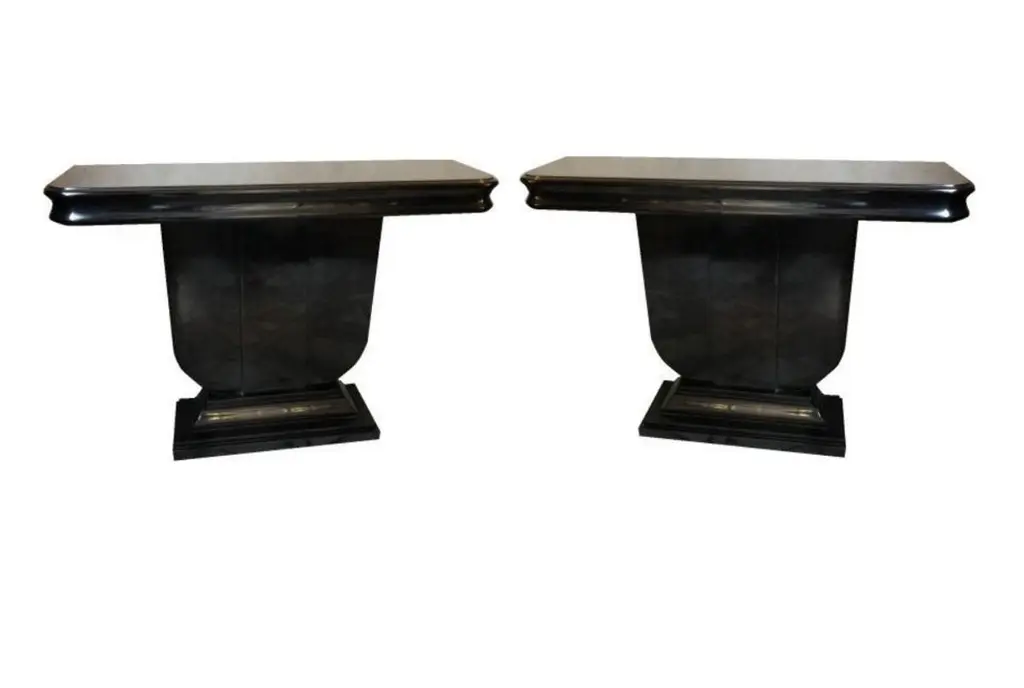Pair Of Consoles Style Art Deco In Wood And Polyurethanic Lacquer, French 1930