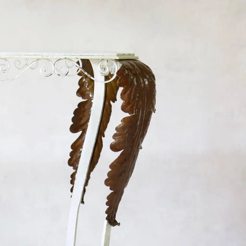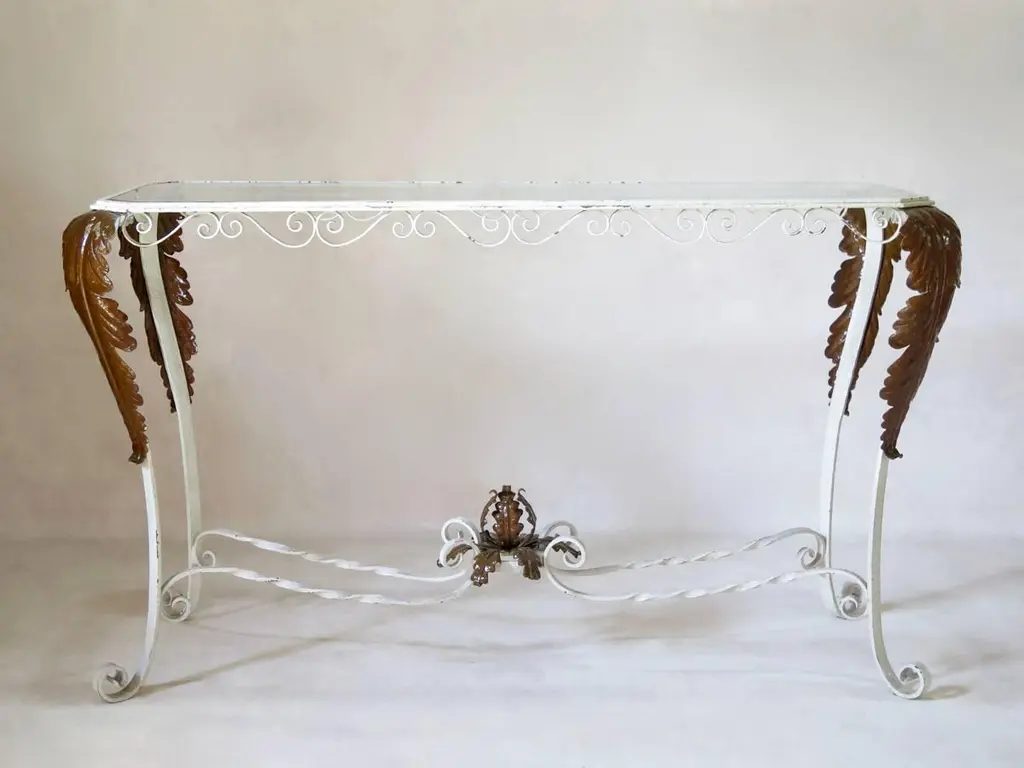 Pair Of Elegant Iron Console Tables With Acanthus Leaf Motif, France Circa 1940s