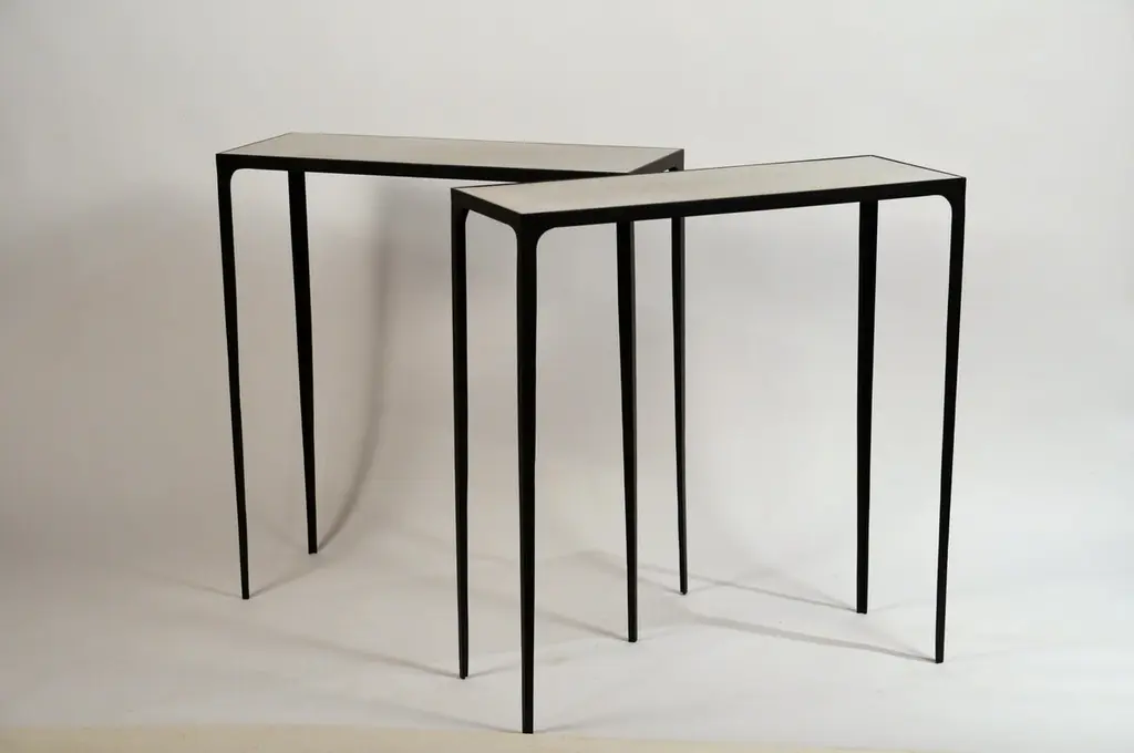 Pair Of 'Esquisse' Wrought Iron And Parchment Consoles By Design Frères